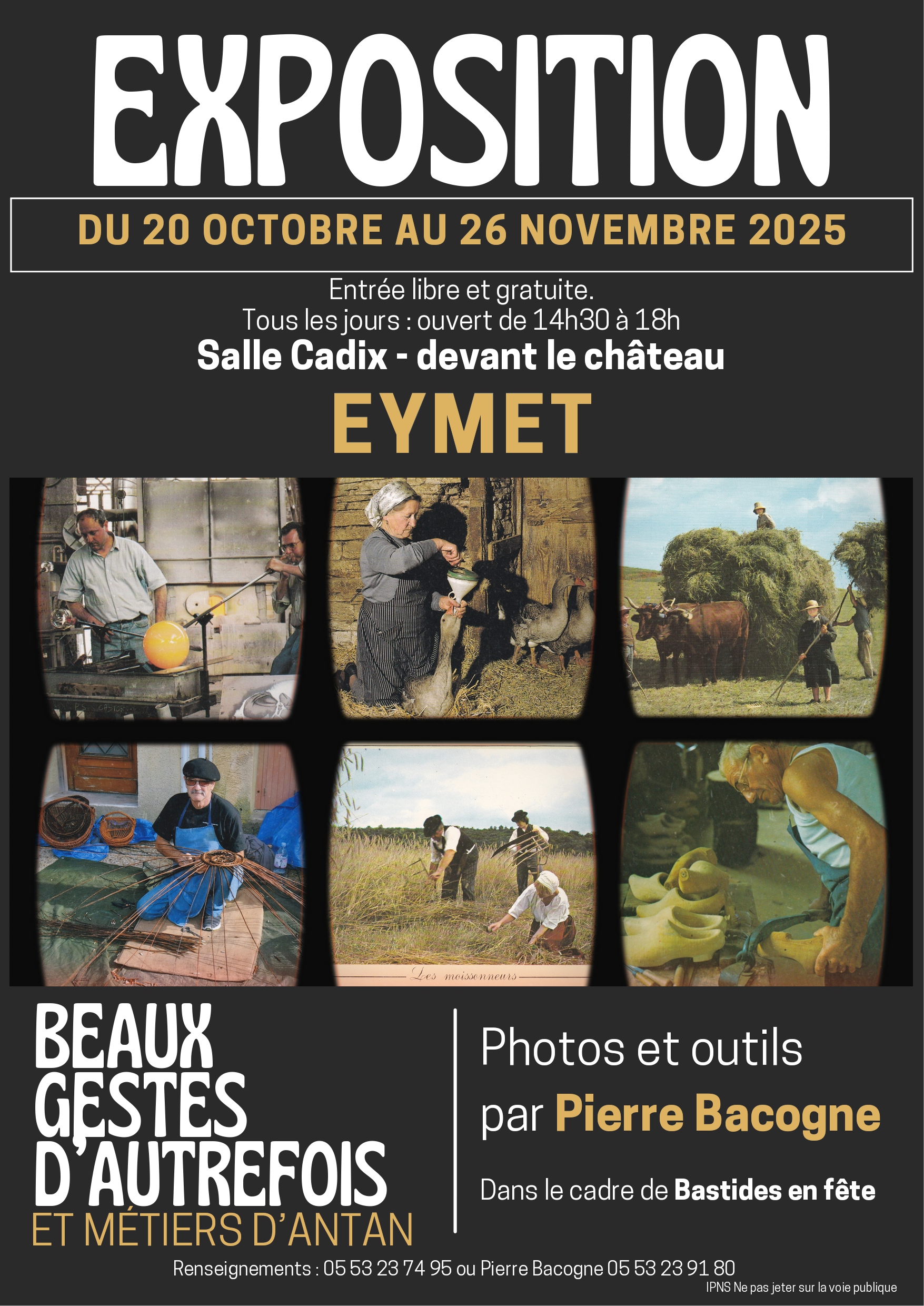 Dans le cadre de Bastides en Fêtes, venez découvrir les photos et outils sur le thème "Beaux gestes d'autrefois et métiers d'antan".
