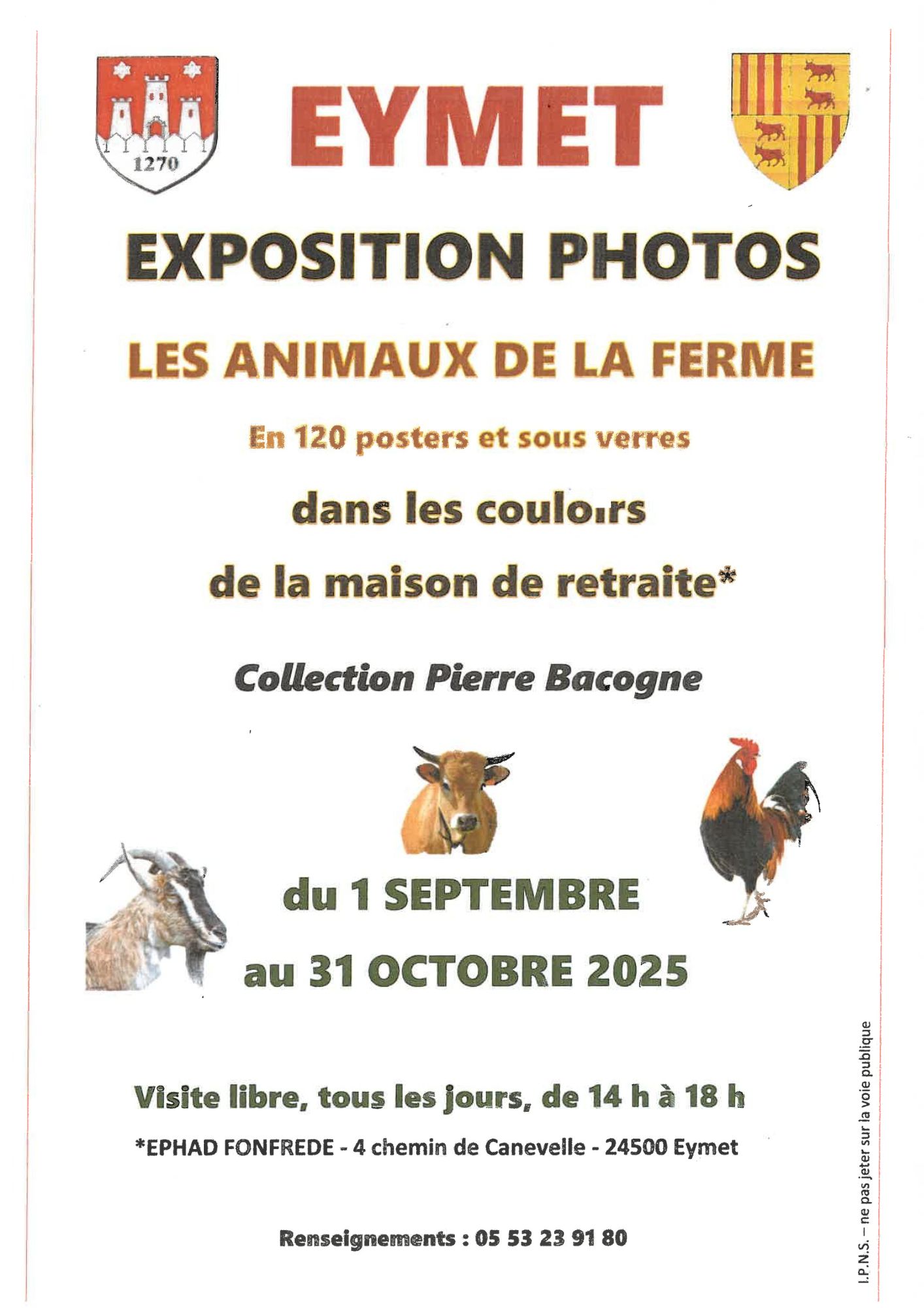 Venez découvrir la collection des photos sur les animaux de la ferme à travers 120 posters et sous verres de Pierre Bacogne, dans les couloirs de la maison de retraite.