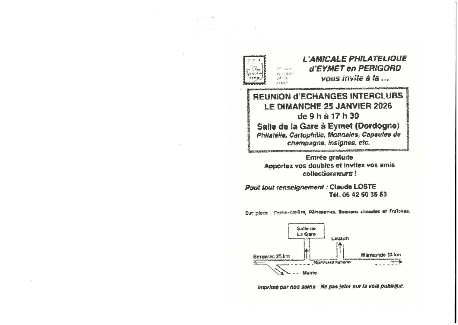 L'Amicale Philatélique d'Eymet vous invite à sa réunion d'échanges interclubs annuelle.