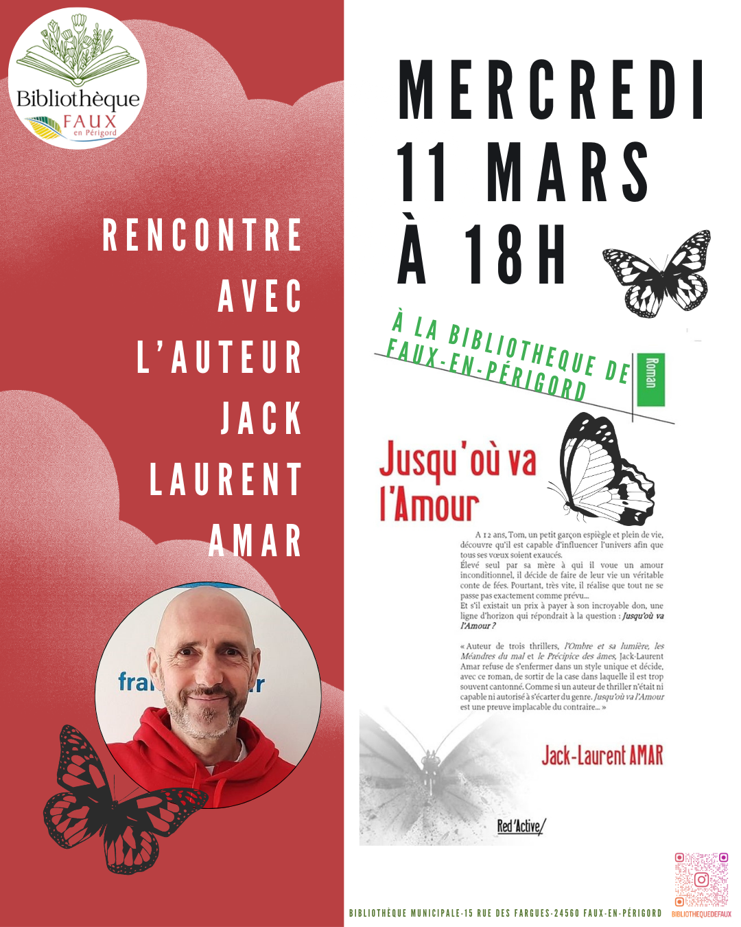 La bibliothèque a le plaisir d'accueillir l'auteur Jack Laurent Amar pour son livre "Jusqu'où va l'Amour". Celui-ci est en effet réédité suite à son succès.