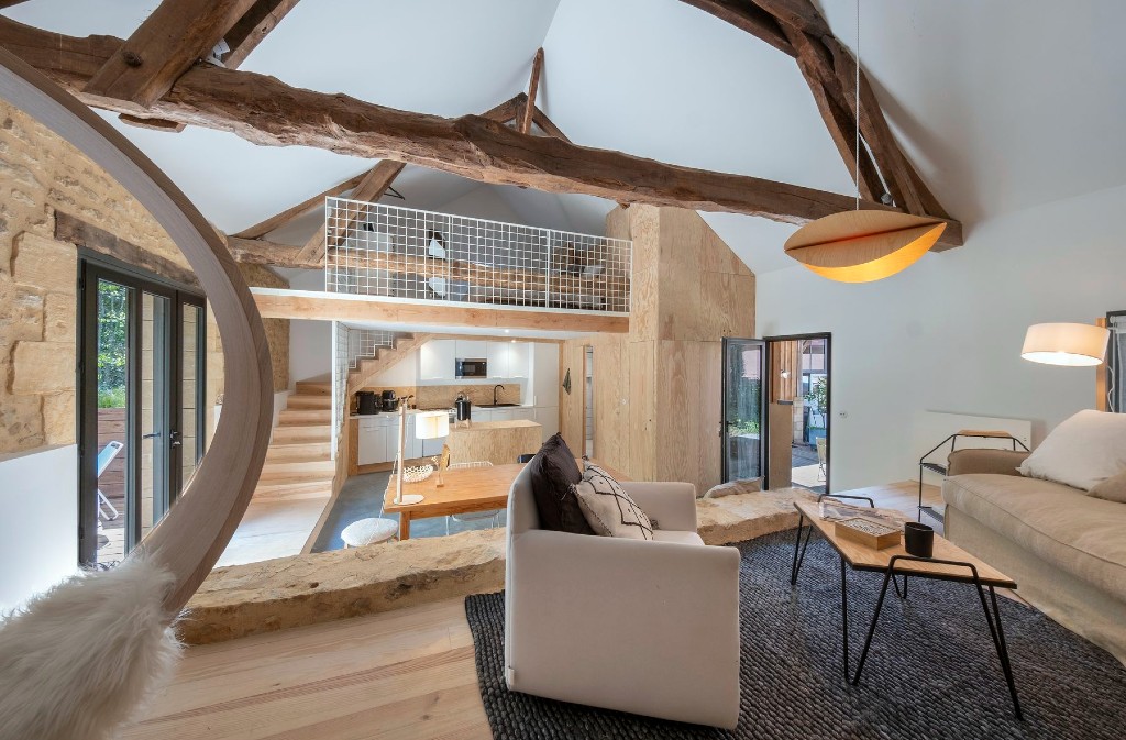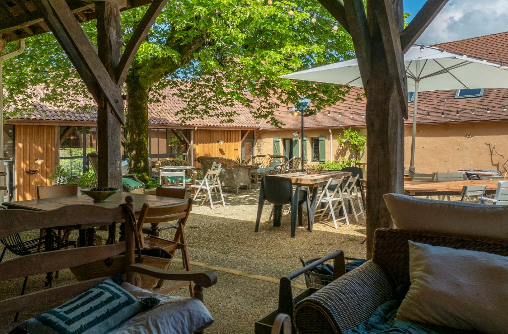 A former Périgord farmhouse organized around a central square, bringing together four guest houses on a 7-hectare estate. This "village square" offers common spaces where everyone can share and meet if they wish.