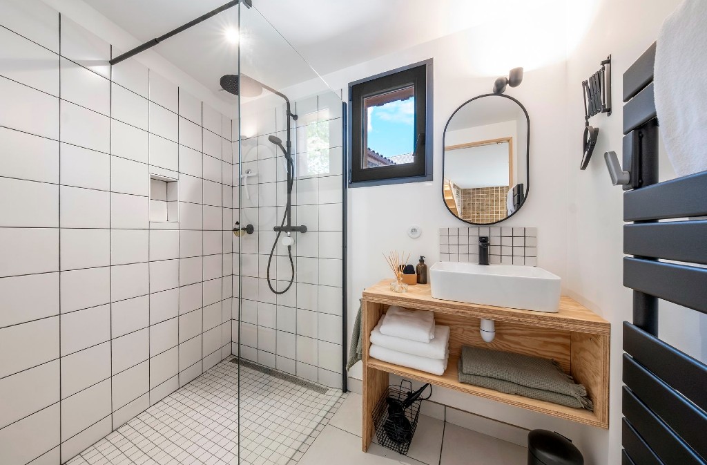 La Cabane, in the style of a pretty minimalist chalet, with a raw wood interior, is the ideal place to meditate, facing the forest.