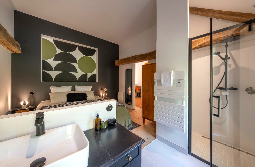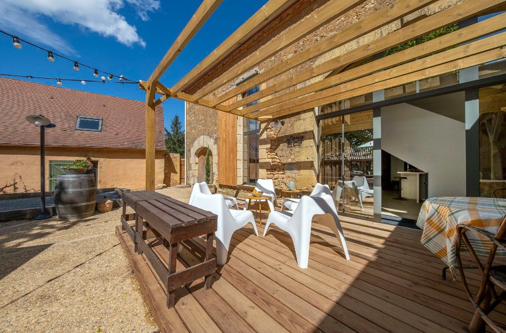 A former Périgord farmhouse organized around a central square, bringing together four guest houses on a 7-hectare estate. This "village square" offers common spaces where everyone can share and meet if they wish.