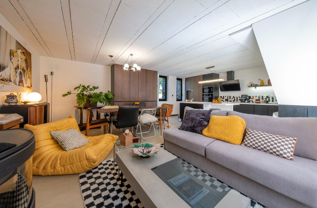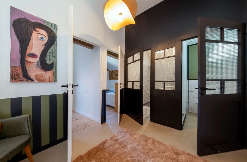 Dominated by a resolutely vintage atmosphere, this colorfully contoured house on the village square has been designed as an invitation to travel back in time...