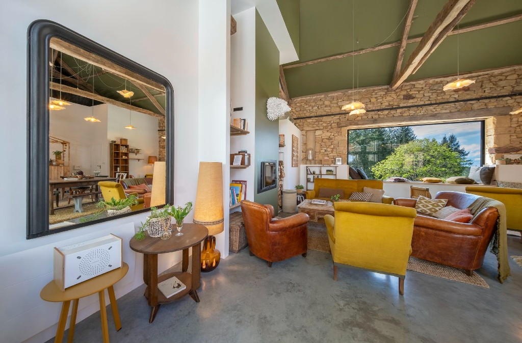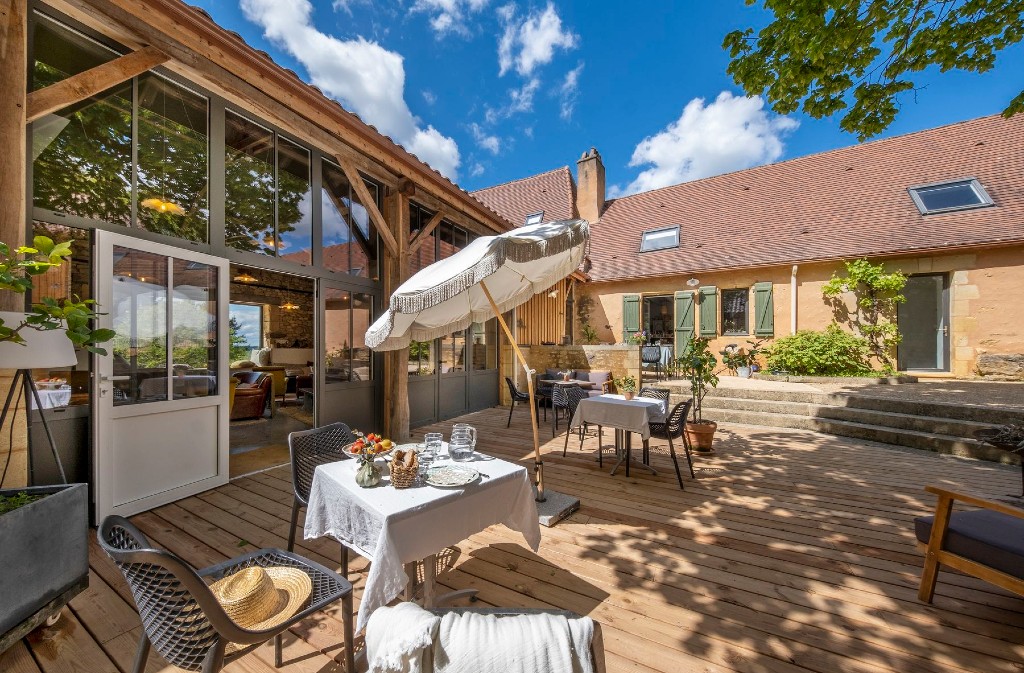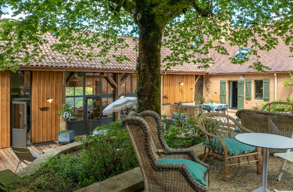 A former Périgord farmhouse organized around a central square, bringing together four guest houses on a 7-hectare estate. This "village square" offers common spaces where everyone can share and meet if they wish.
