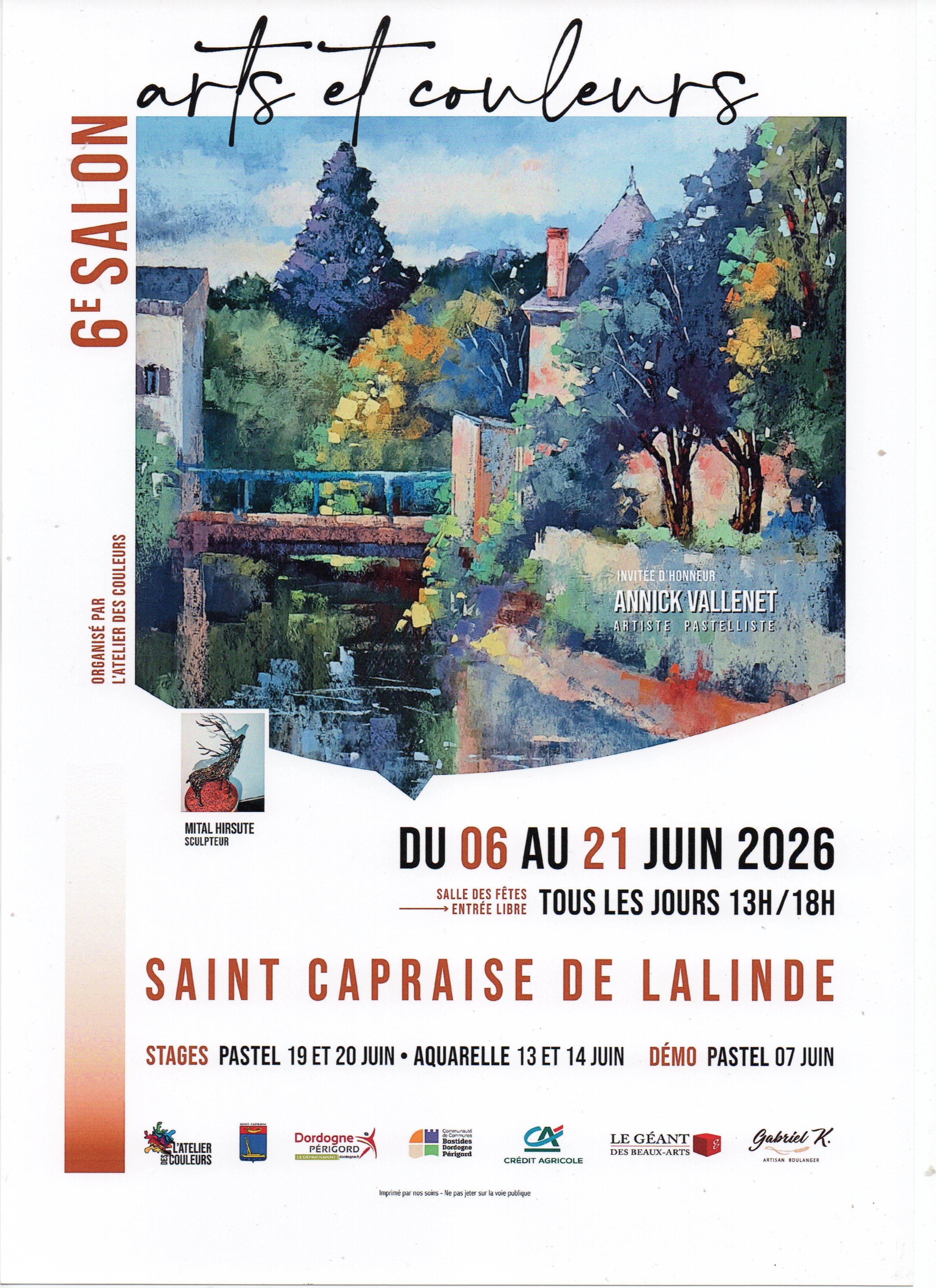 - Stages de pastel : 19 et 20 juin ; aquarelle : 13 et 14 juin