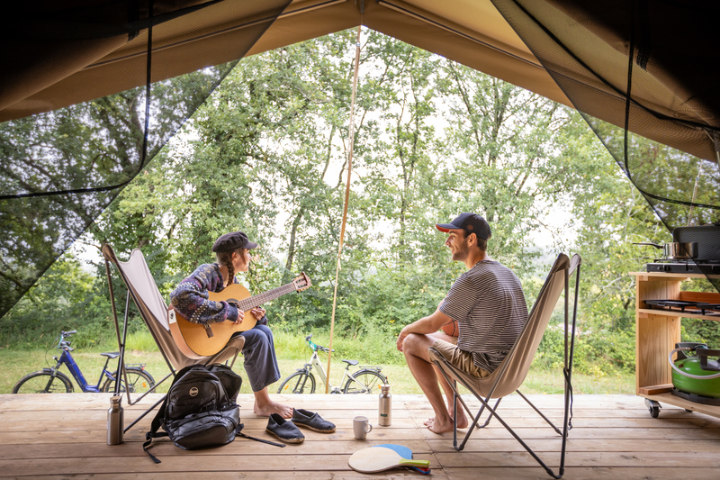Set up on a spacious pitch or choose a comfortable accommodation package – canvas and wood tent or chalet – for total immersion in nature.