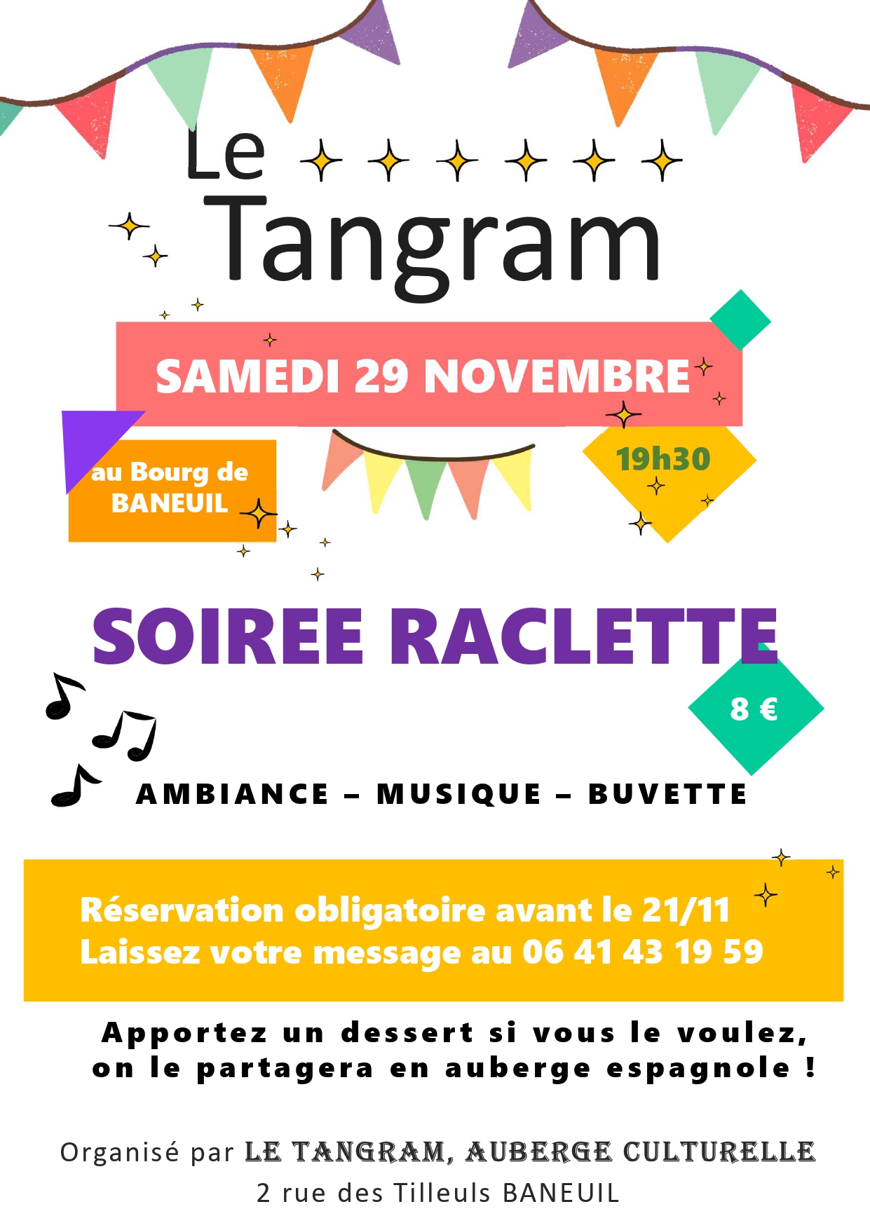 L'association du Tangram Baneuil organise une raclette conviviale pour aborder l'hiver ensemble et avec le sourire !
