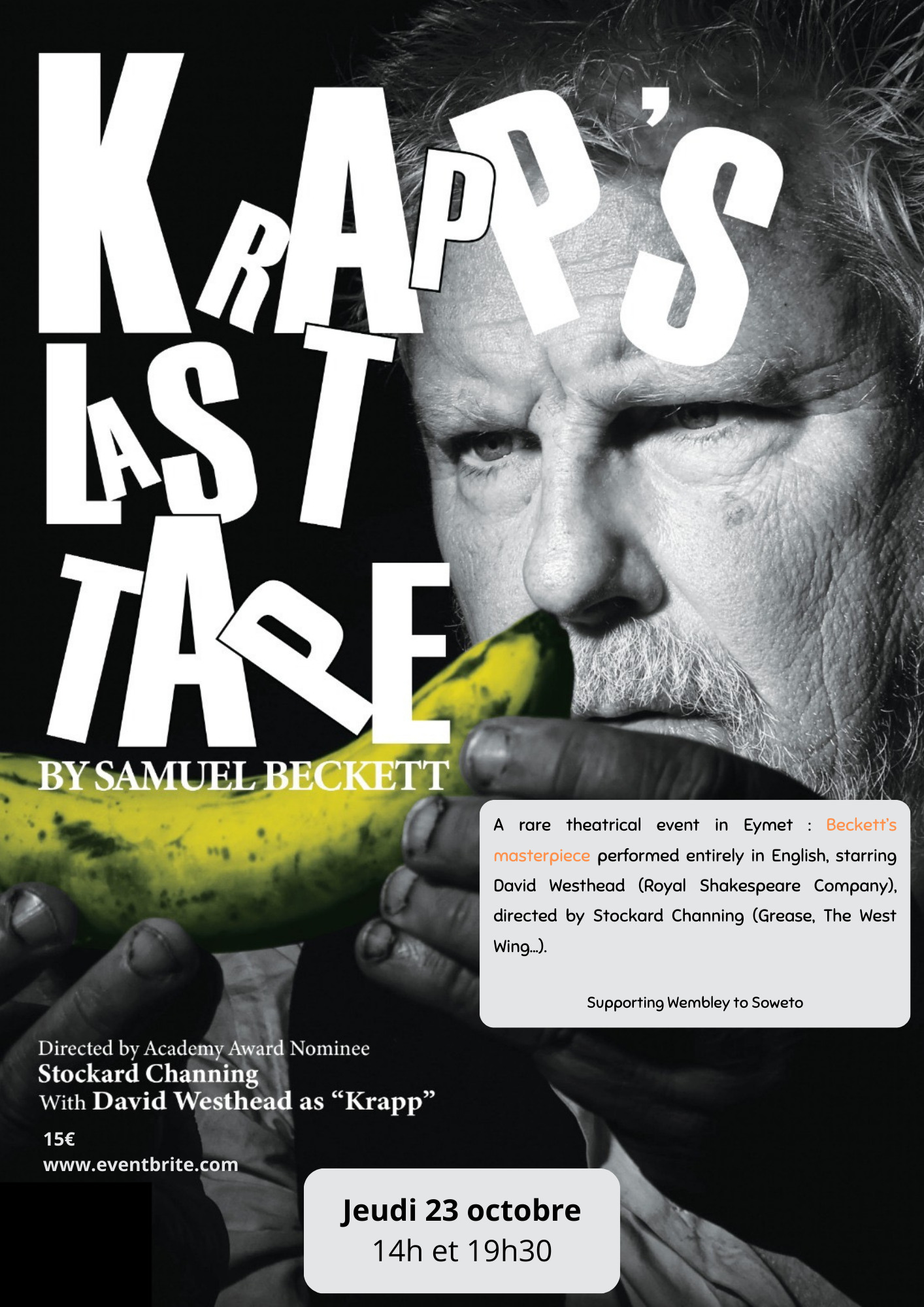 Les recettes du spectacle seront intégralement reversées à l'association Wembley to Soweto."Krapp's Last Tape" – an unforgettable exploration of the human soul.