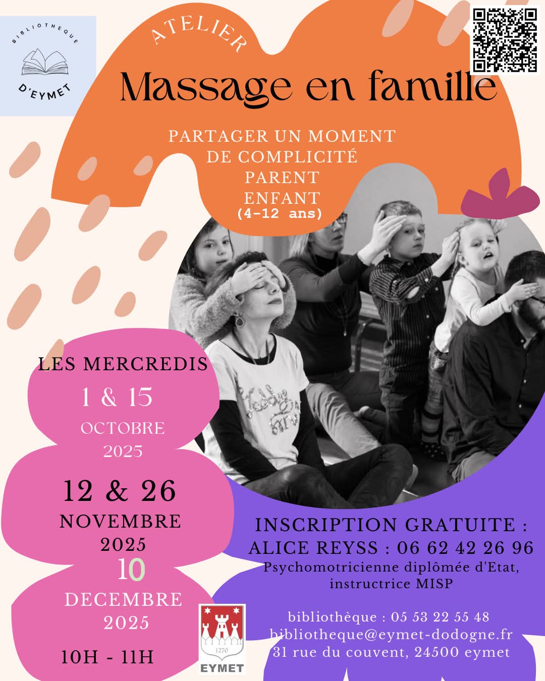 Alice vous invite à découvrir le massage parents enfants qui se compose de mouvements simples et ludiques : les enfants et le parents se massent réciproquement. Effets bénéfiques : améliore les liens individuels au sein de la famille, encourage la communication, et apporte calme et détente.