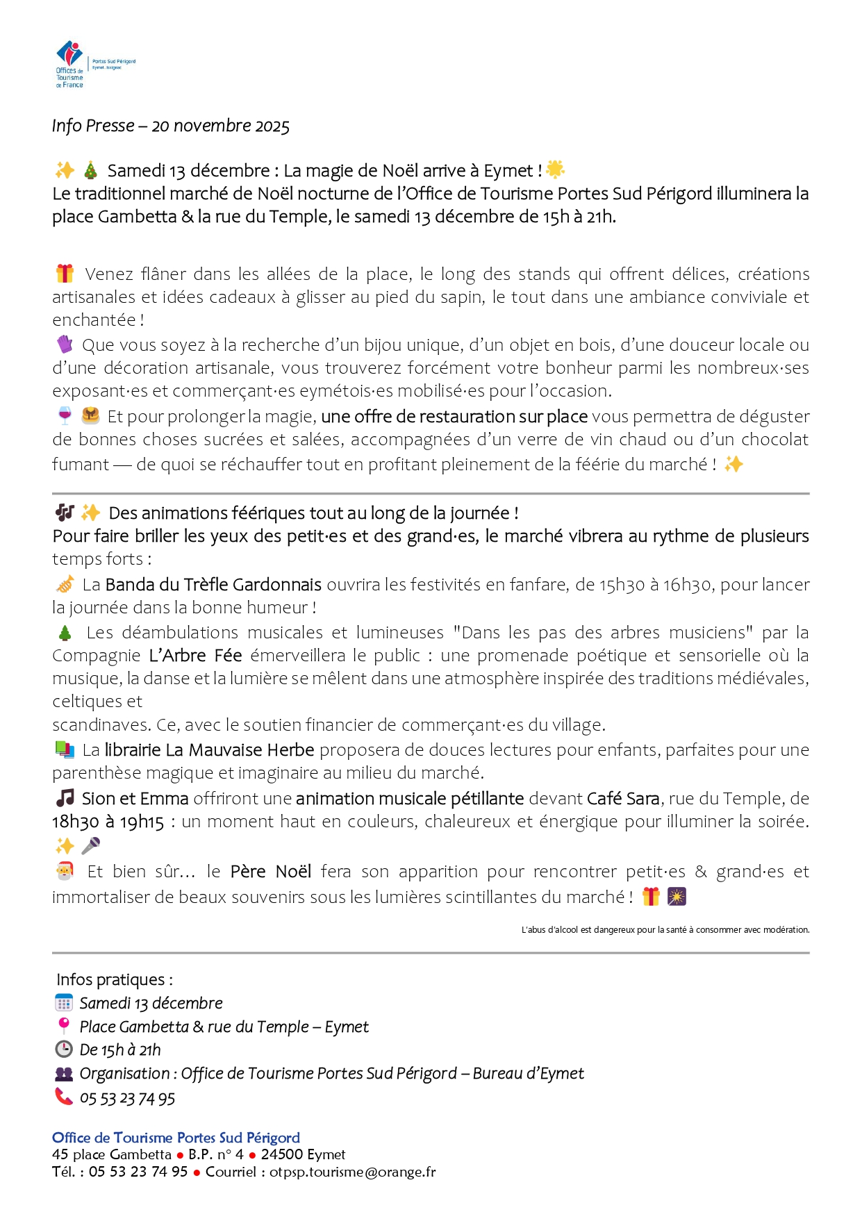Des animations de Noël vous seront également proposées, animées par l'Arbre Fée.