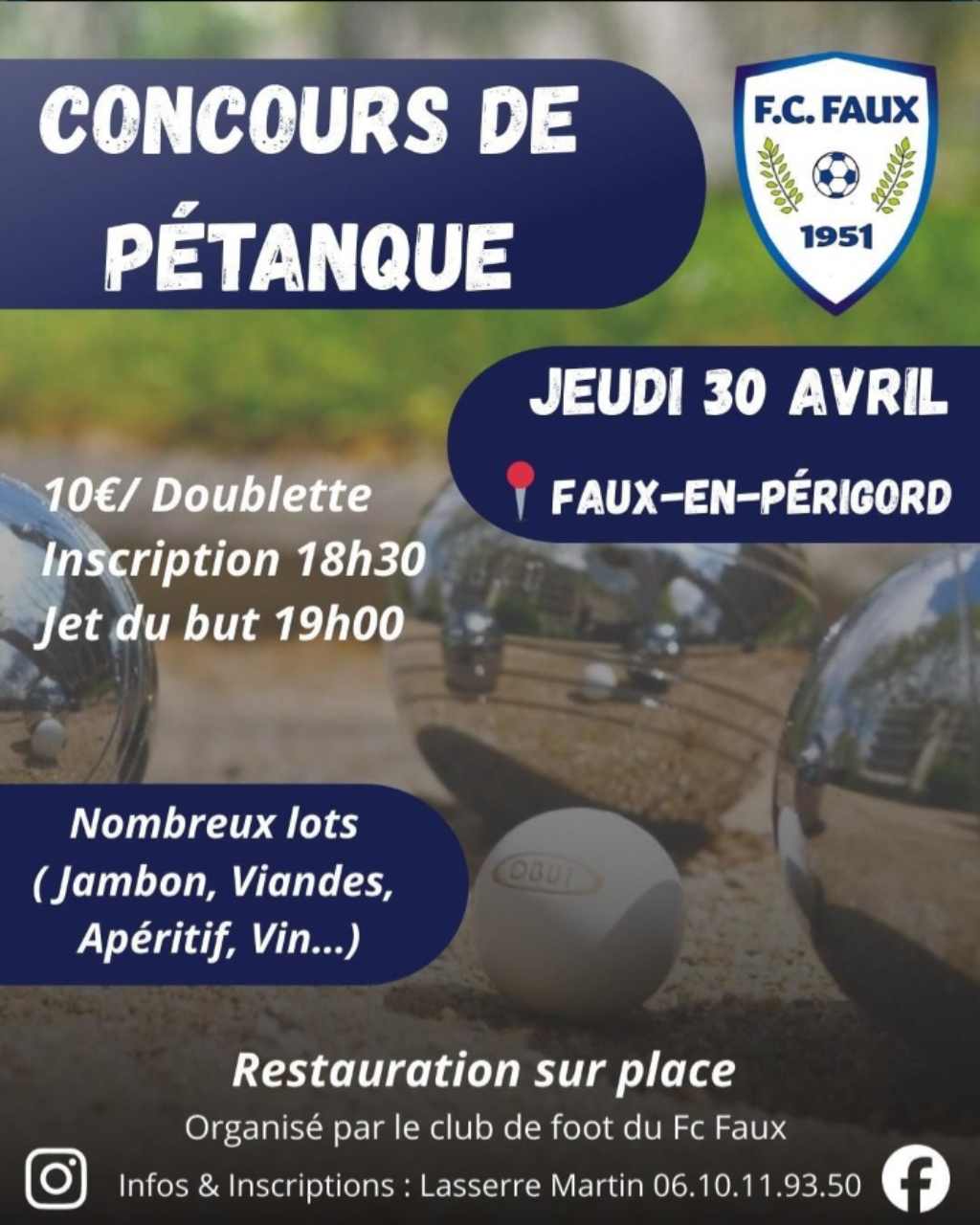 Venez participer au concours de pétanque en doublette organisé par le Club Foot du FC Faux.