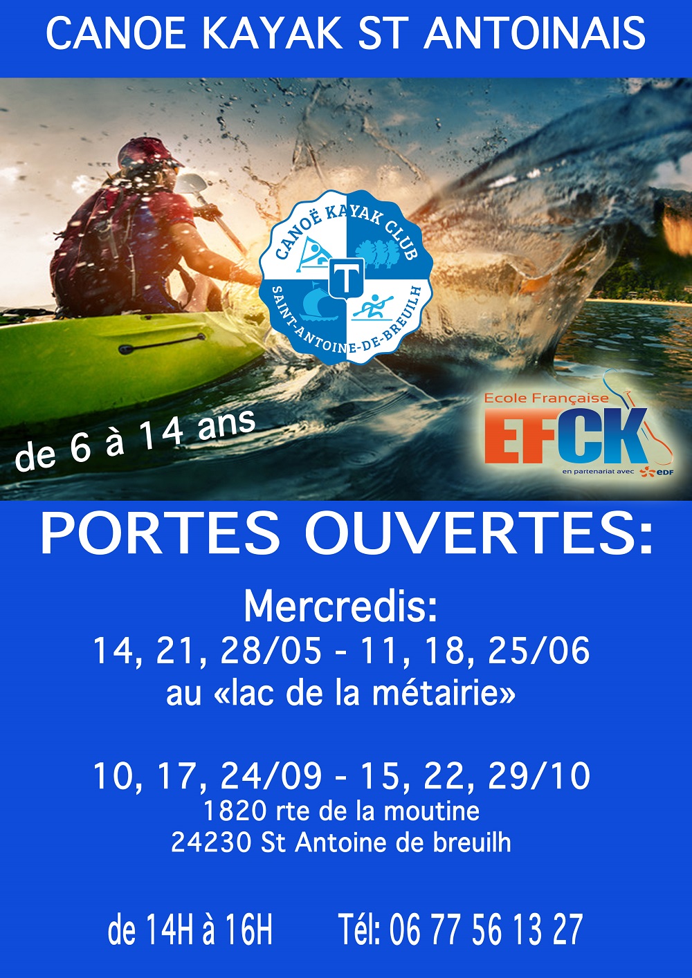 Venez nombreux et nombreuses aux portes ouvertes organisées par le Canoë Kayac St-Antoinais.