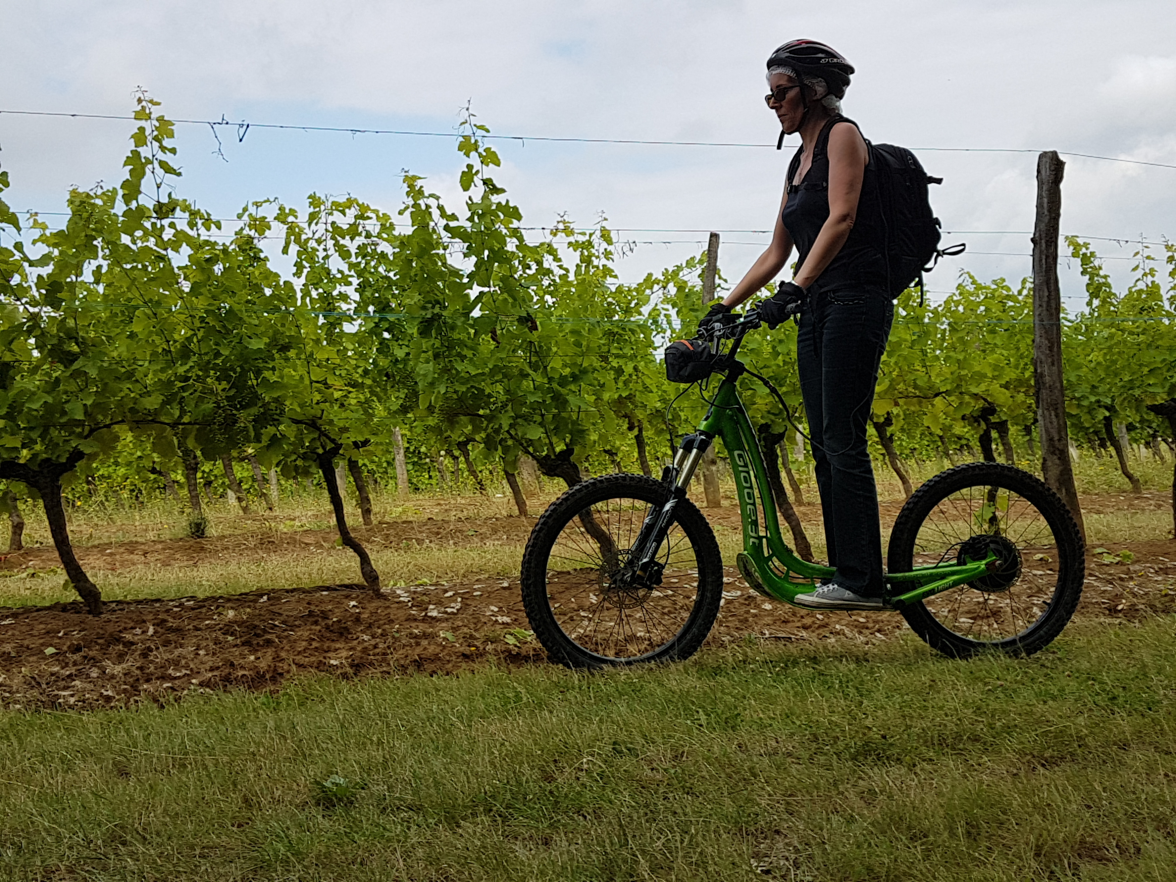 Discover our vineyard around Bergerac on electric scooters. A 2h route with "the Randos de Nico". 2H electric scooter ride in the vineyards with the Nico hiking trails.