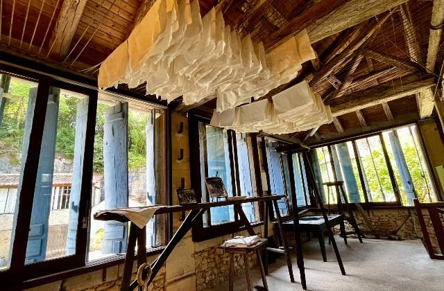 Couze-et-Saint-Front, un petit village en lisière de Dordogne, au bord d’un ruisseau la Couze. C’est ici, dans ce vallon paisible, que se niche le Moulin de la Rouzique, un lieu plein de charme et de surprises, où l’on fabrique du papier à la main… comme au XVe siècle.