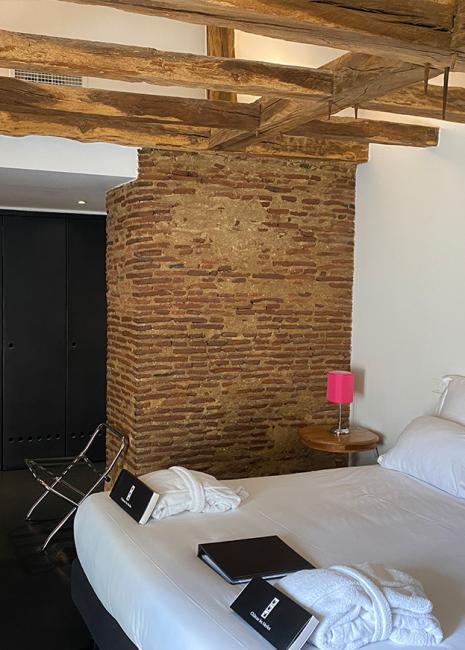 Le corps du bâtiment construit au 17ème siècle abrite aujourd’hui un hôtel 4 étoiles de 14 chambres. Les chambres sont un parfait mélange entre authenticité, avec murs en pierre, parquet en bois et poutres apparentes et modernité avec un design contemporain.