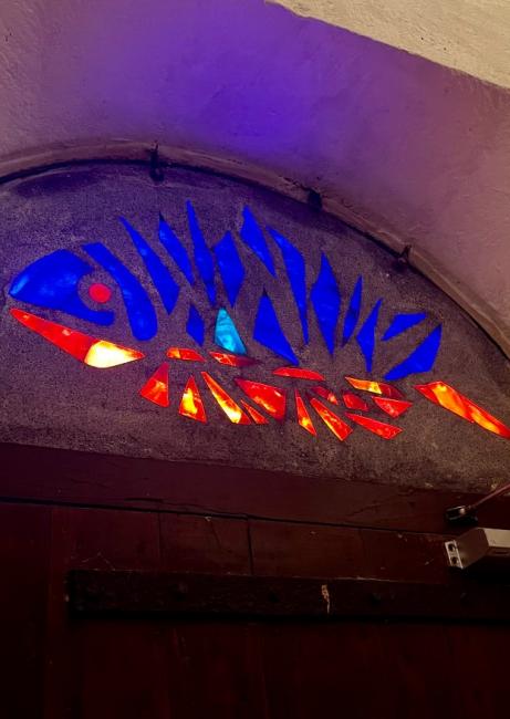 On ne s’attend pas à une telle surprise dans une chapelle nichée au fond d’un cimetière. Et pourtant, on se laisse happer par l’ambiance douce et contemplative, presque irréelle. Les vitraux ne décorent pas : ils racontent. Un poisson, symbole discret au-dessus du portail, rappelle la foi des premiers chrétiens. Chaque motif, chaque teinte semble murmurer une histoire, un lien invisible entre le présent et le XIIe siècle.