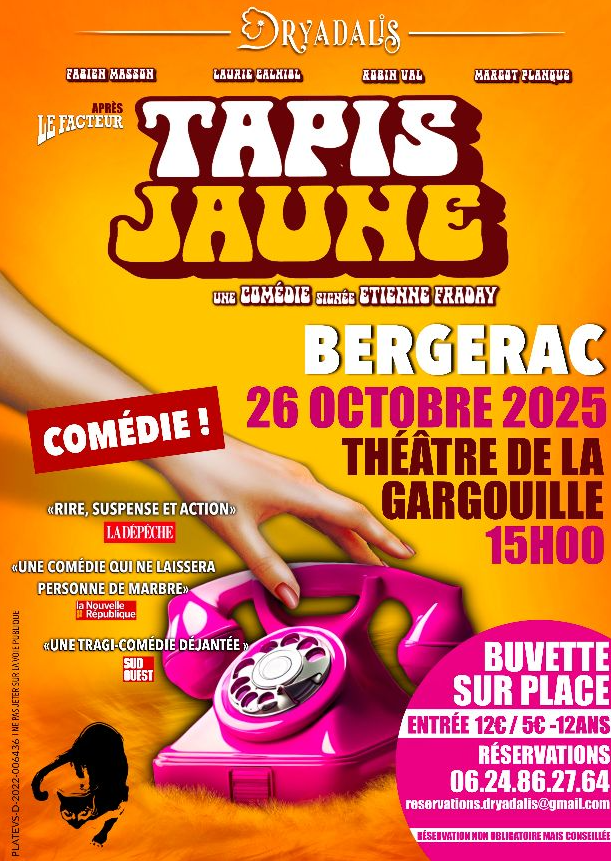 Tapis Jaune", une comédie signée Étienne Fraday. Venez profiter de cette comédie mêlant rires, suspense et action !