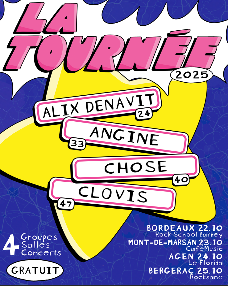 Une série de concerts dans 4 départements aquitains avec 4 groupes au talent prometteur, choisis par les salles de musiques actuelles (SMAC) de la région.