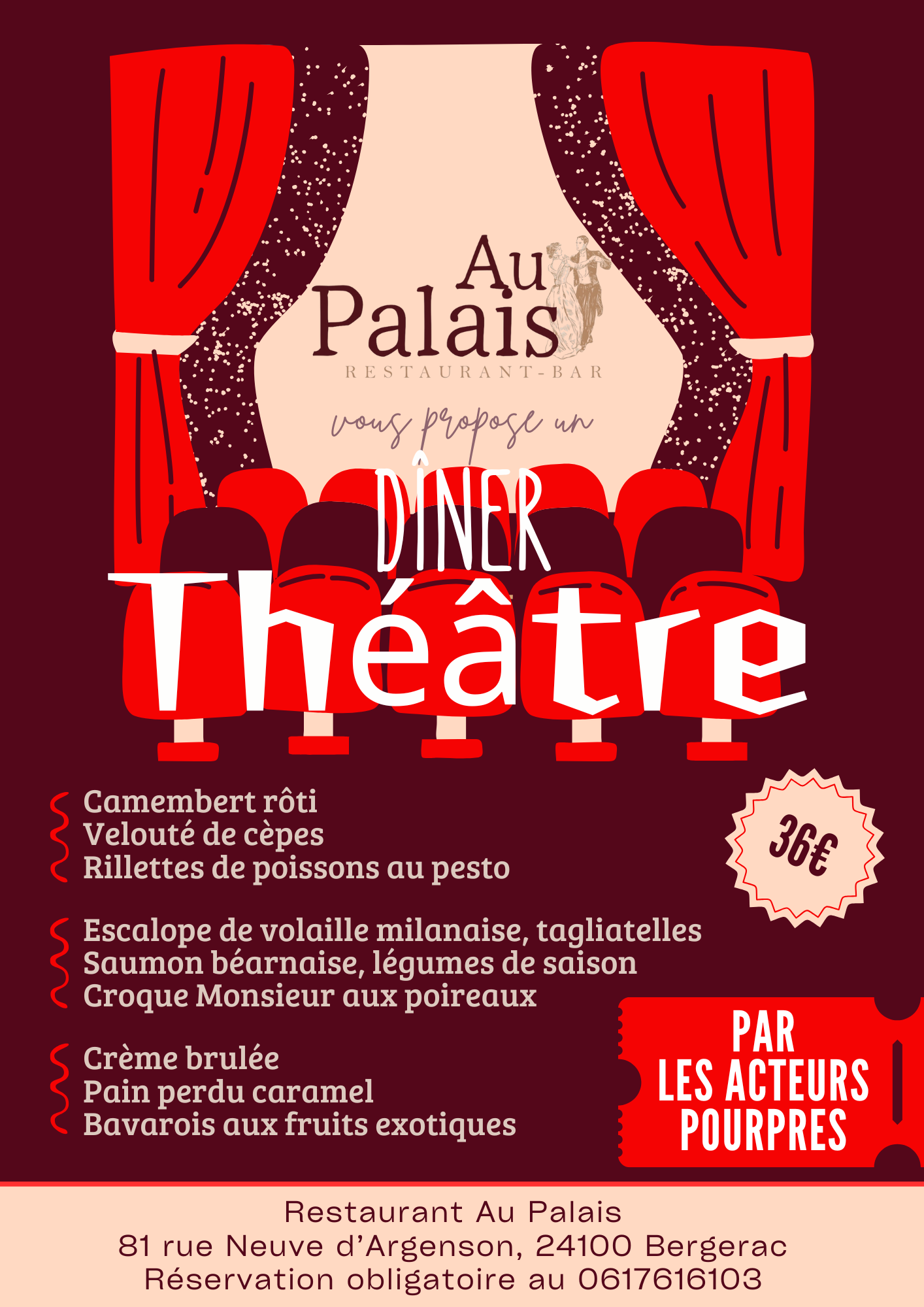 Le restaurant Au Palais vous propose un dîner spectacle avec les Acteurs Pourpres.