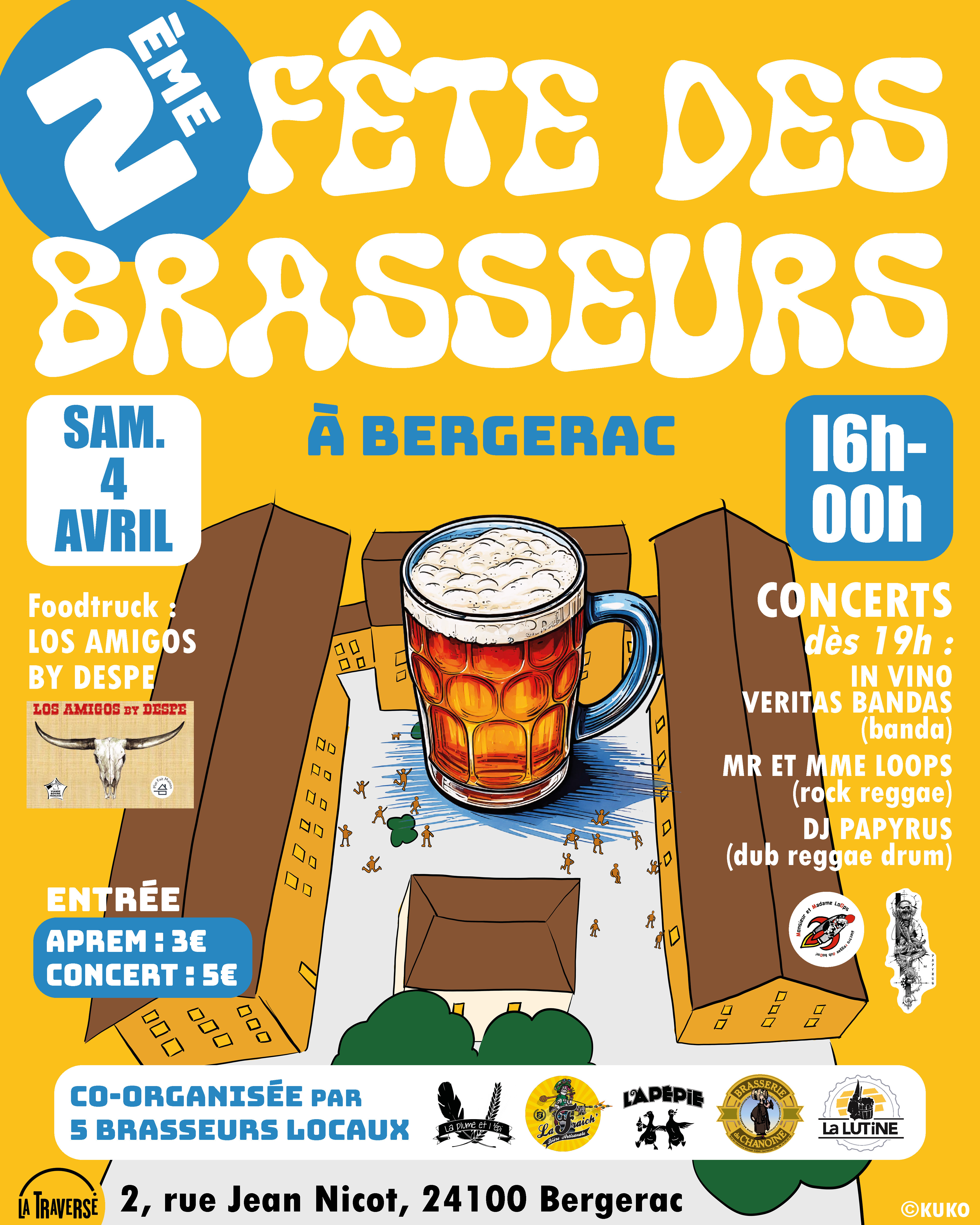 Pour la 2ᵉ fête des brasseurs à La Traverse, La Fraich’ coorganise avec 4 brasseurs de Dordogne une grande fête de la bière avec concert !