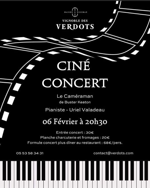 Le Vignoble des Verdots accueille un ciné-concert autour du film muet Le Caméraman de Buster Keaton. Cette projection exceptionnelle est accompagnée en direct au piano par Uriel Valadeau, offrant une immersion musicale qui sublime l’humour et la poésie du cinéma burlesque.
