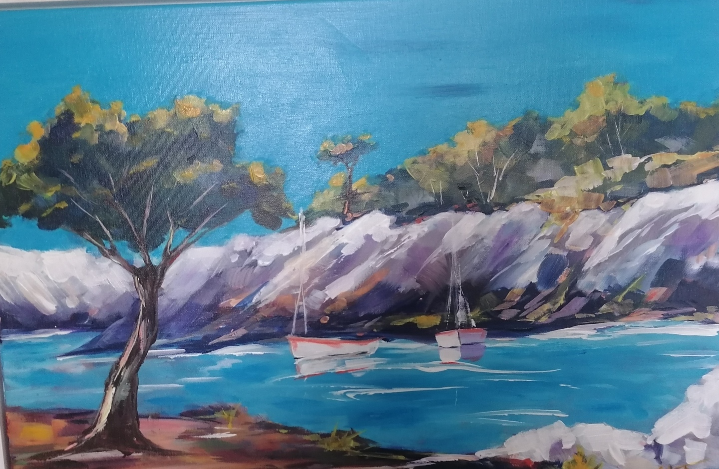 Les tableaux lumineux de Martine Agard, réalisés à l’acrylique, évoquent les vacances, la joie et les instants festifs.