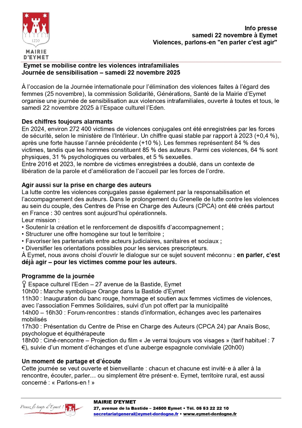 - Journée de lutte contre les violences faites aux femmes et intrafamiliales