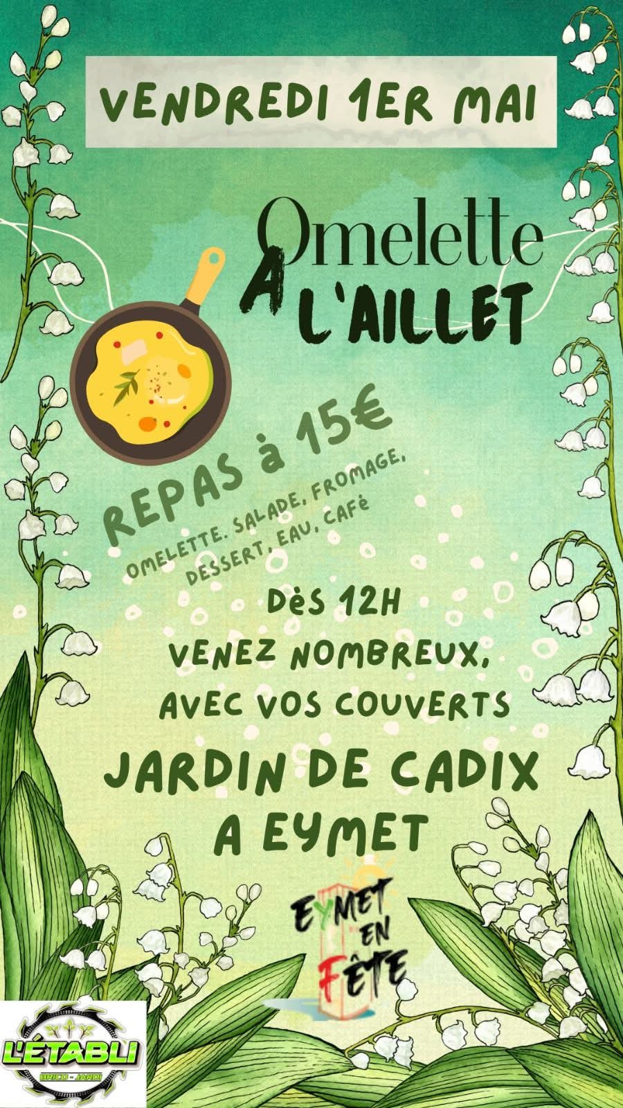 Rejoignez-nous pour l'omelette à l'aillet du 1er mai, organisée par l'association "Eymet en Fête".