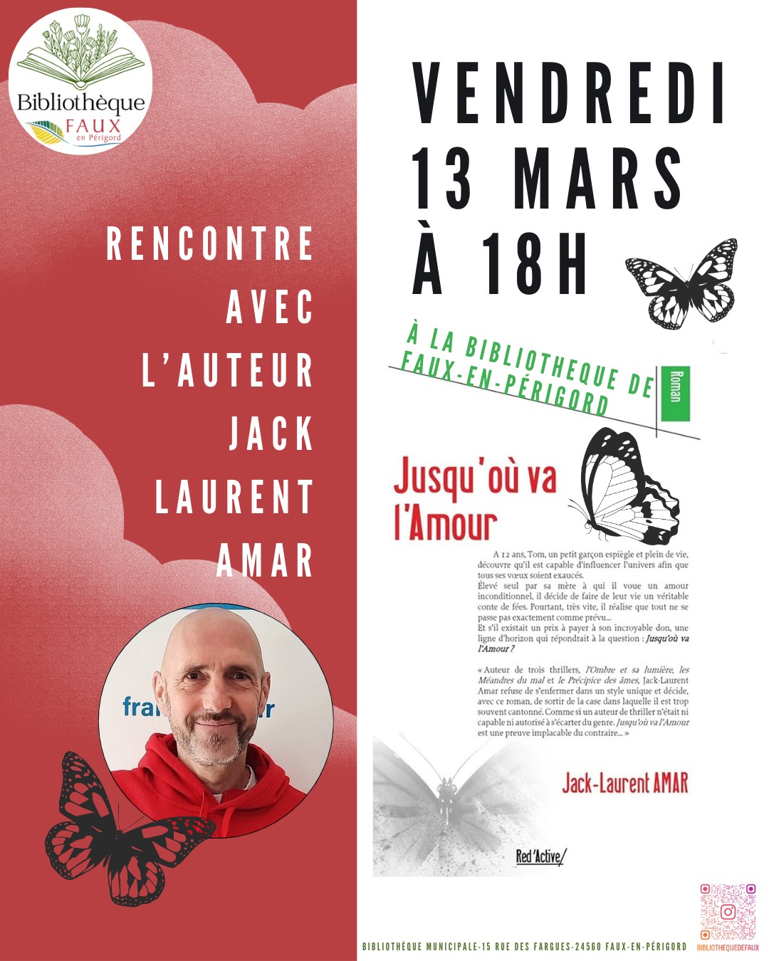 La bibliothèque a le plaisir d'accueillir l'auteur Jack Laurent Amar pour son livre "Jusqu'où va l'Amour". Celui-ci est en effet réédité suite à son succès.