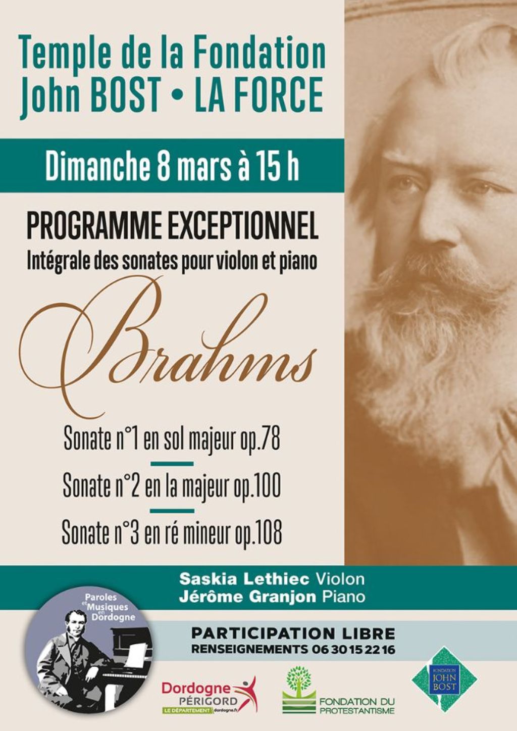 Programmation exceptionnelle : intégrale des sonates pour violon et piano de Brahms