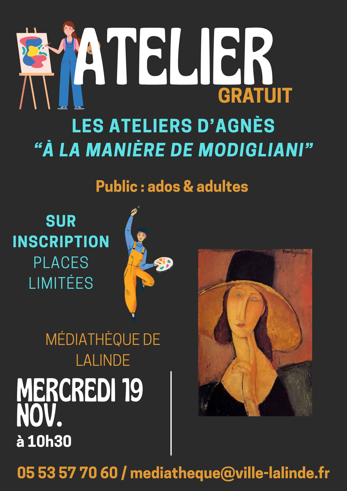 La médiathèque vous propose une atelier d'Agnès à la manière de Modigliani.