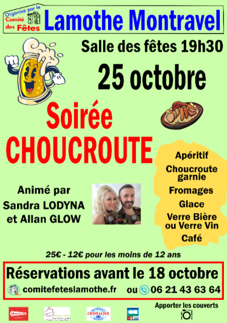 Venez passer une soirée conviviale autour d’une délicieuse choucroute !
