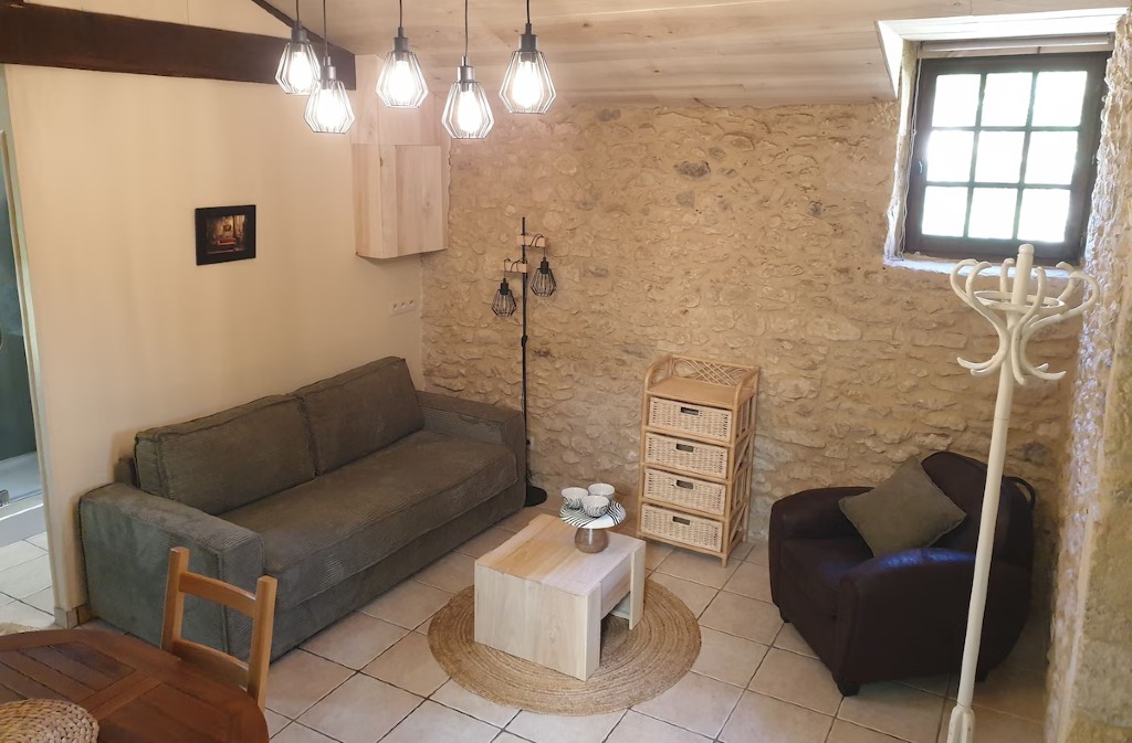 Situé dans un parc arboré et verdoyant et avec sa cour privative, ce gîte vous procurera sérénité et tranquillité. Cet ancien pigeonnier rustique a gardé tout son charme avec ses vieilles pierres tout en ayant le confort moderne. La chambre à coucher, dans ce qui était un four à pain, vous apportera un décor atypique pour des nuits reposantes.