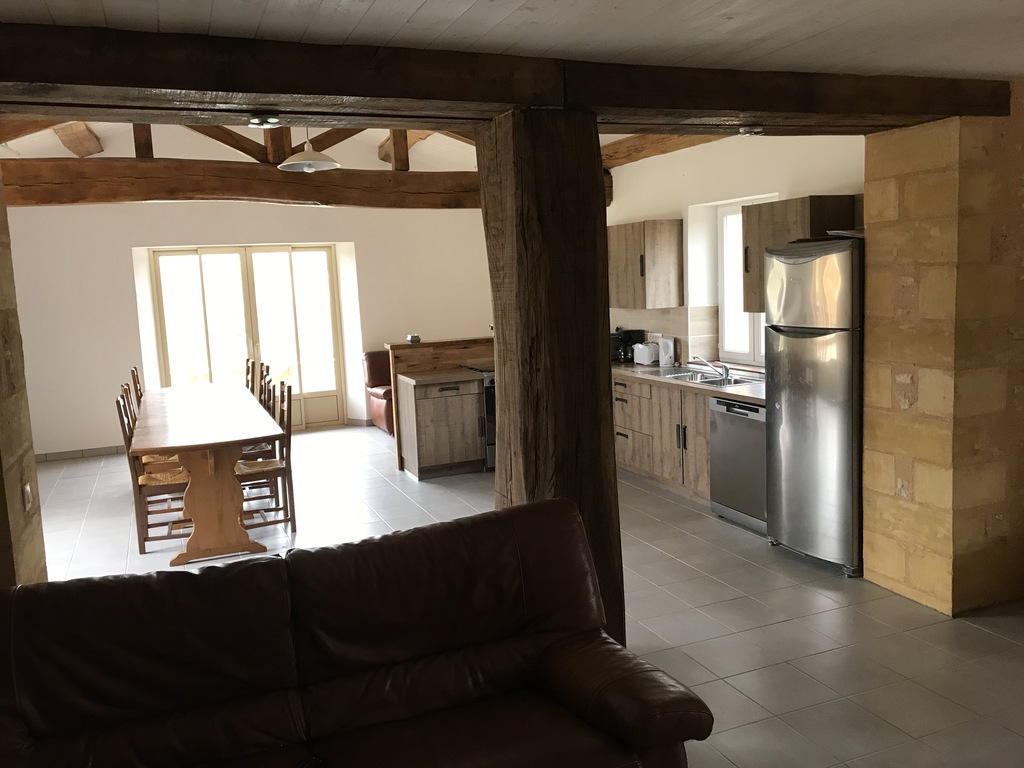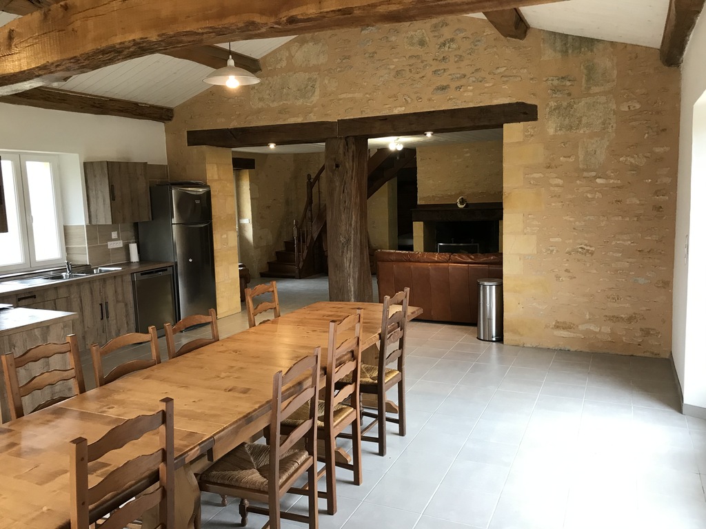 Au RDC, 1 chambre avec lit double, 1 salle de bain, 1 dortoir avec 6 lits simples, 1 grand salon donnant sur la terrasse et la cuisine équipée.