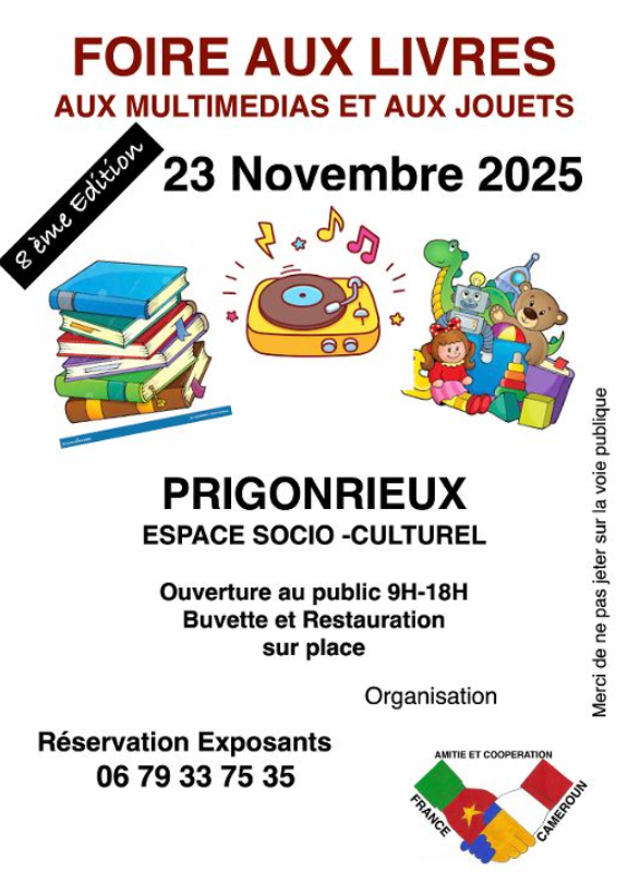 Venez profiter de la 8ᵉ édition de la Foire aux livres, multimédias et jouets de Prigonrieux !
