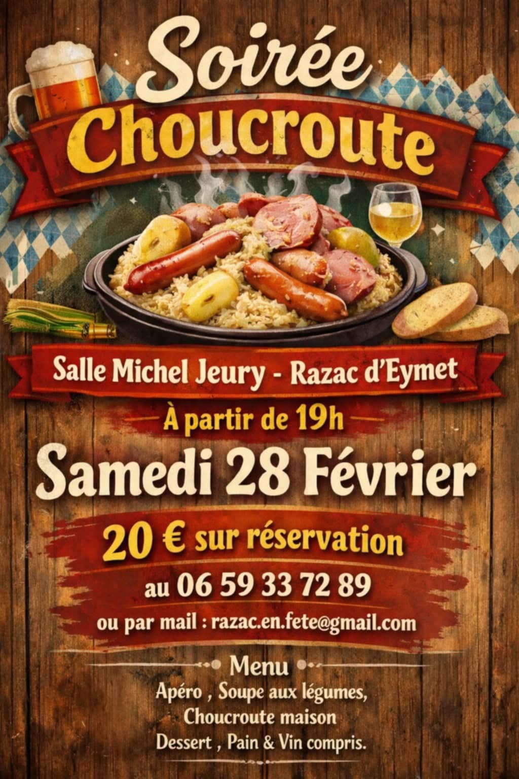 L'association "Razac d'Eymet en fête" vous propose une soirée Choucroute.
