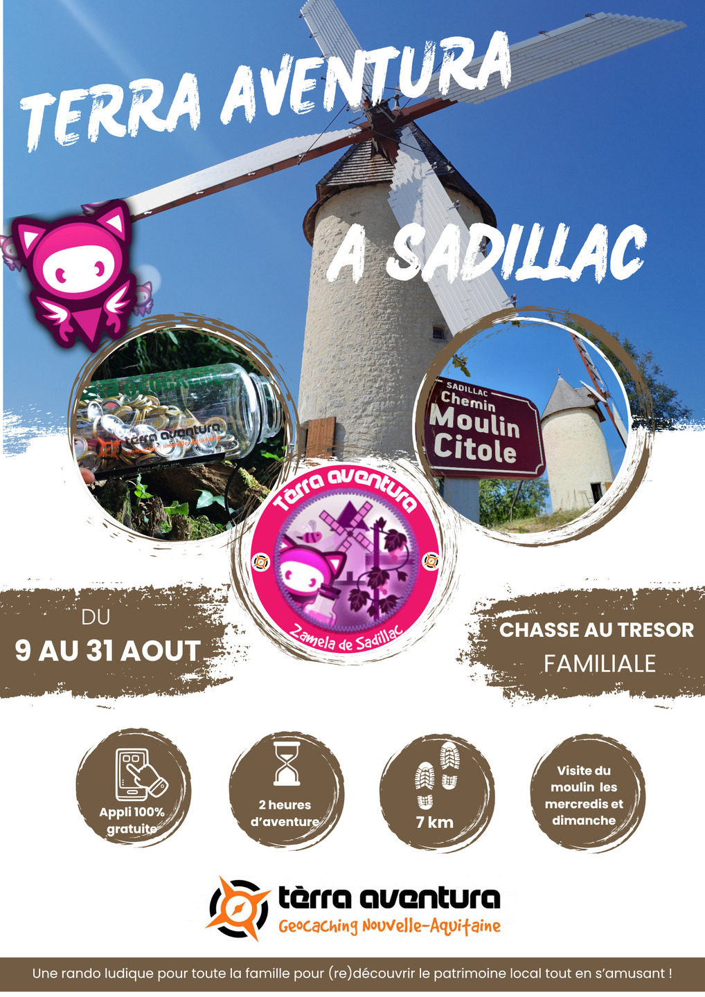 Le parcours "Tourne, tourne, petit moulin ; vole, vole, belle Zaméla" de Sadillac apparaîtra sur l'application le 9 août à 9h.