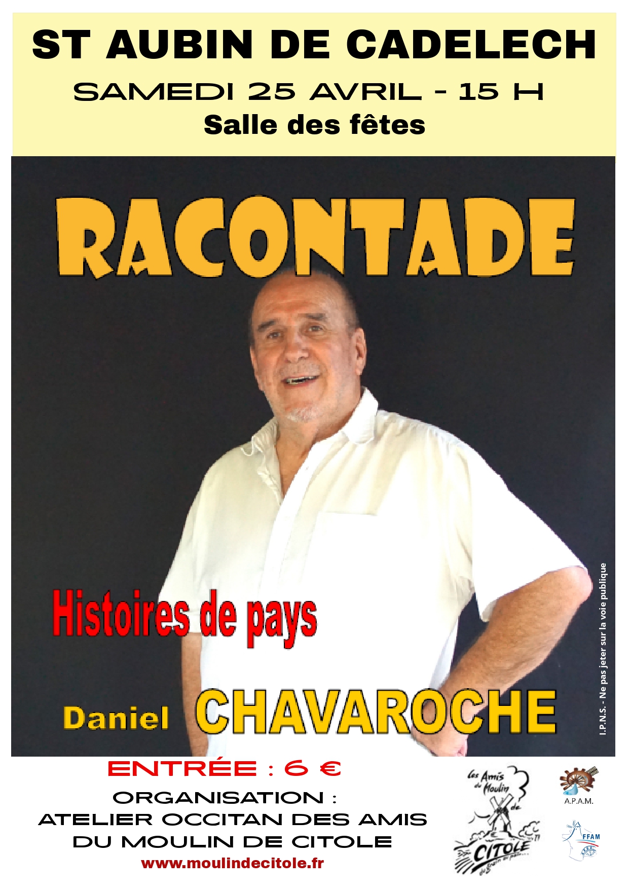 L'association de l'Atelier occitan des amis du Moulin de Citole propose un spectacle franco-occitan avec le conteur Daniel CHAVAROCHE.