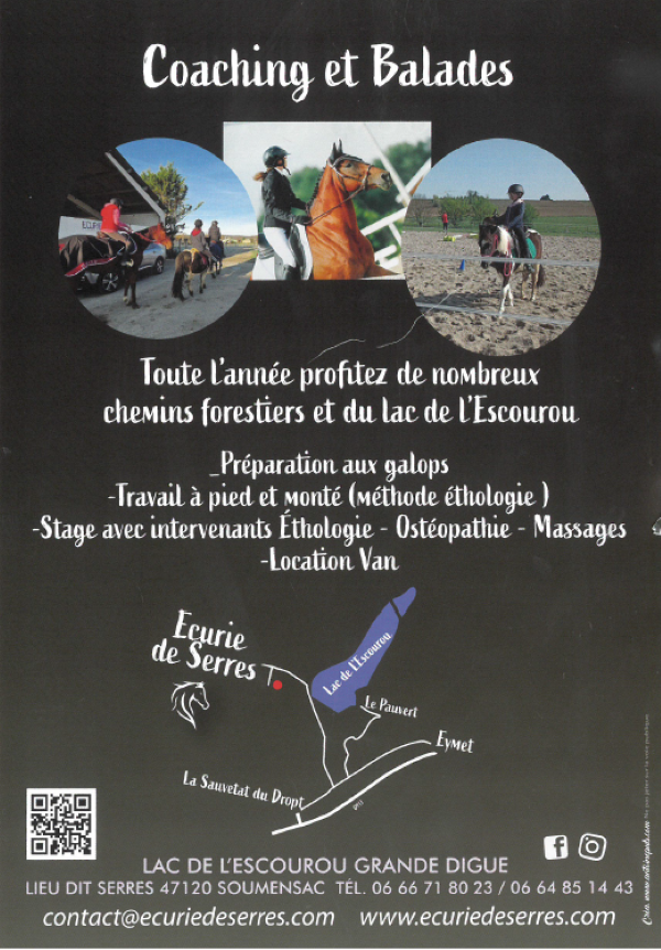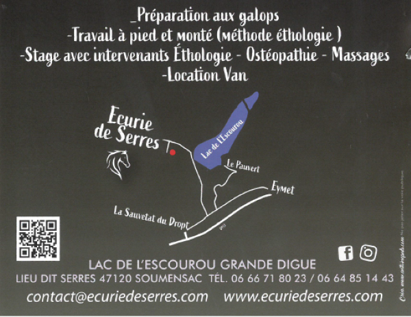Depuis 2021, l’écurie de Serres met toute son expertise et ses compétences au service des particuliers, professionnels pour le bien être du cheval. Ils proposent des balades, des débourrages, de la pension et de la rééducation éthologique.