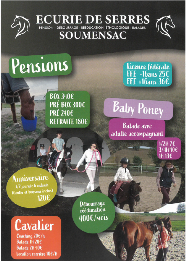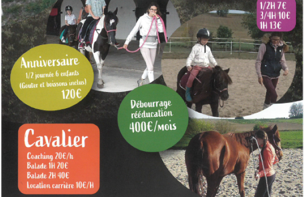 - Tarif de base : De 12,00€ à 40,00 € (Pour les balades)