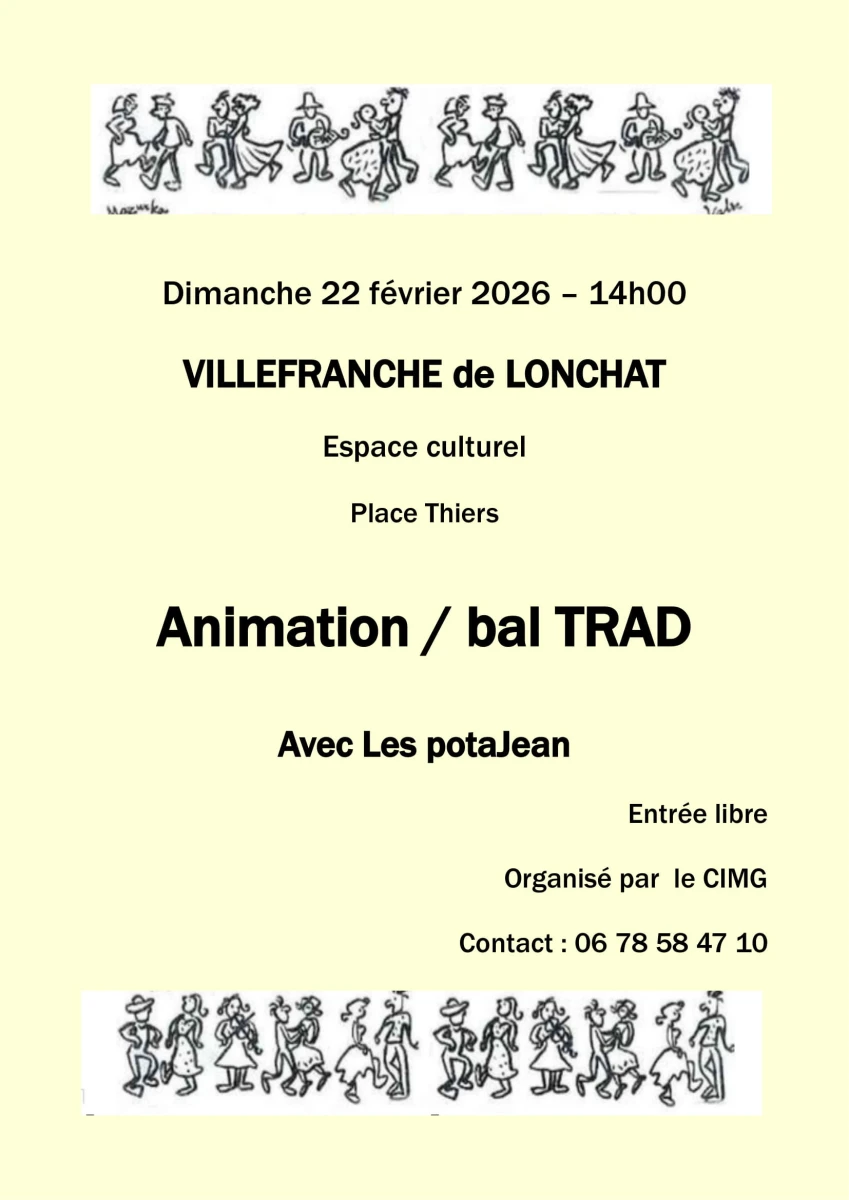 Venez profiter d’une animation bal trad festive et conviviale, entrée libre, avec le groupe Les PotaJean.