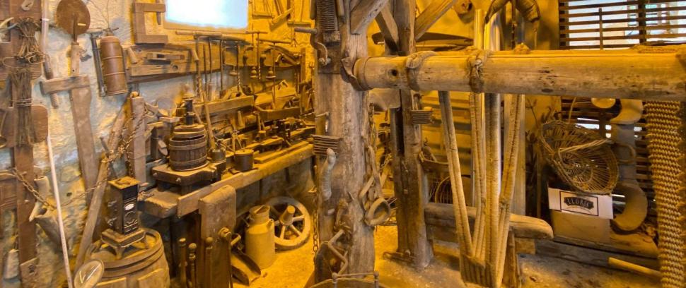 La visite de la forge est libre et a pu se faire avec la collaboration du maire de Monsac, Daniel Segala et de Jacky Durand qui nous font entrer avec plaisir dans ce lieu hors du temps. Au premier coup d’œil, c’est la richesse de la collection d’outils qui s’avère impressionnante. Tout y est ou presque ! Ces outils traditionnels du forgeron mais également du maréchal ferrant ont été réunis par des bénévoles et d’anciennes familles de forgerons qui en ont fait don. Tout d’abord, nous sommes impressionnées par certains outils que l’on ne voit pas tous les jours : un travail à ferrer les bêtes (ou métier à ferrer) pour les bœufs et un outil mystère. En effet, personne n’a encore pu trouver l’utilité de cet outil ; si quelqu’un a la réponse, nous serions curieuses de la connaitre !