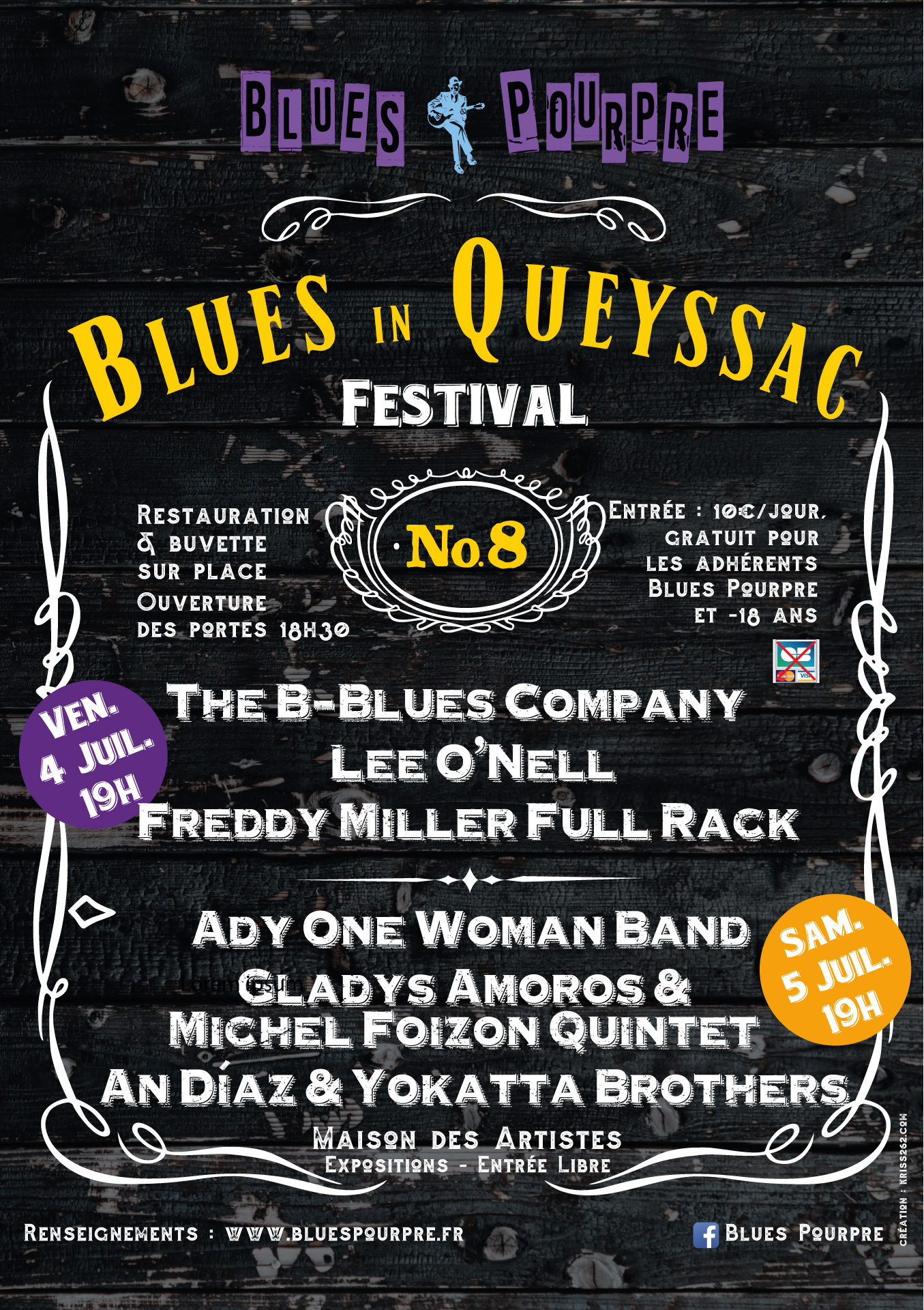 Crée à la fin de l’année 2016 par une poignée de fondu de la musique « Bleue », racine de nombreuses musiques actuelles, le festival « BLUES IN QUEYSSAC » pose ses valises dans le petit village de Queyssac, à 9 km de Bergerac, et rencontre chaque année un vif succès, tant la demande des amateurs des « 12 mesures » est là et bien là…