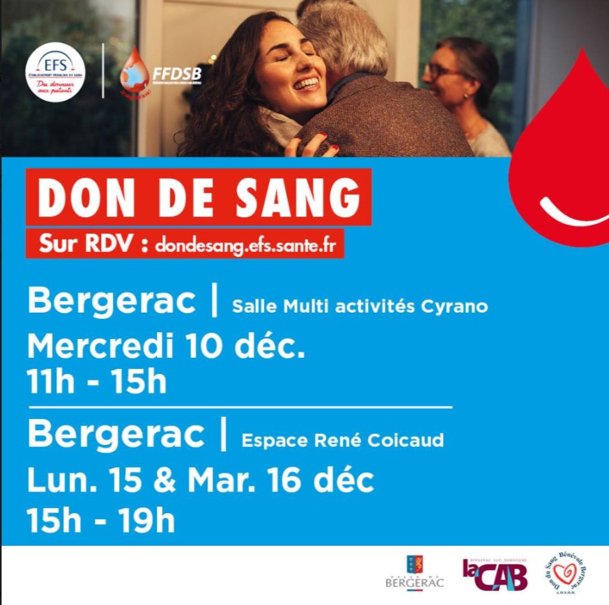 Une collecte de don du sang est organisée à la salle René Coicaud.