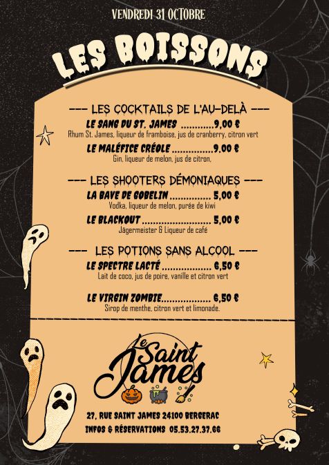 Le restaurant le Saint James vous propose des animations spéciales pour le 31 octobre.