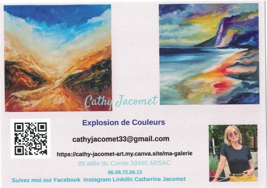C. Jacomet : Peintre autodidacte, je me consacre à l'abstraction lyrique, où geste et matière sont essentiels à mon expression. Influencée par le mouvement, je peins avec énergie, adoptant une approche intuitive pour créer des compositions libres. Mon travail équilibre spontanéité et maîtrise, utilisant la peinture à l'huile pour explorer nuances et transparences, tout en mettant l'accent sur l'intuition et la liberté du geste.