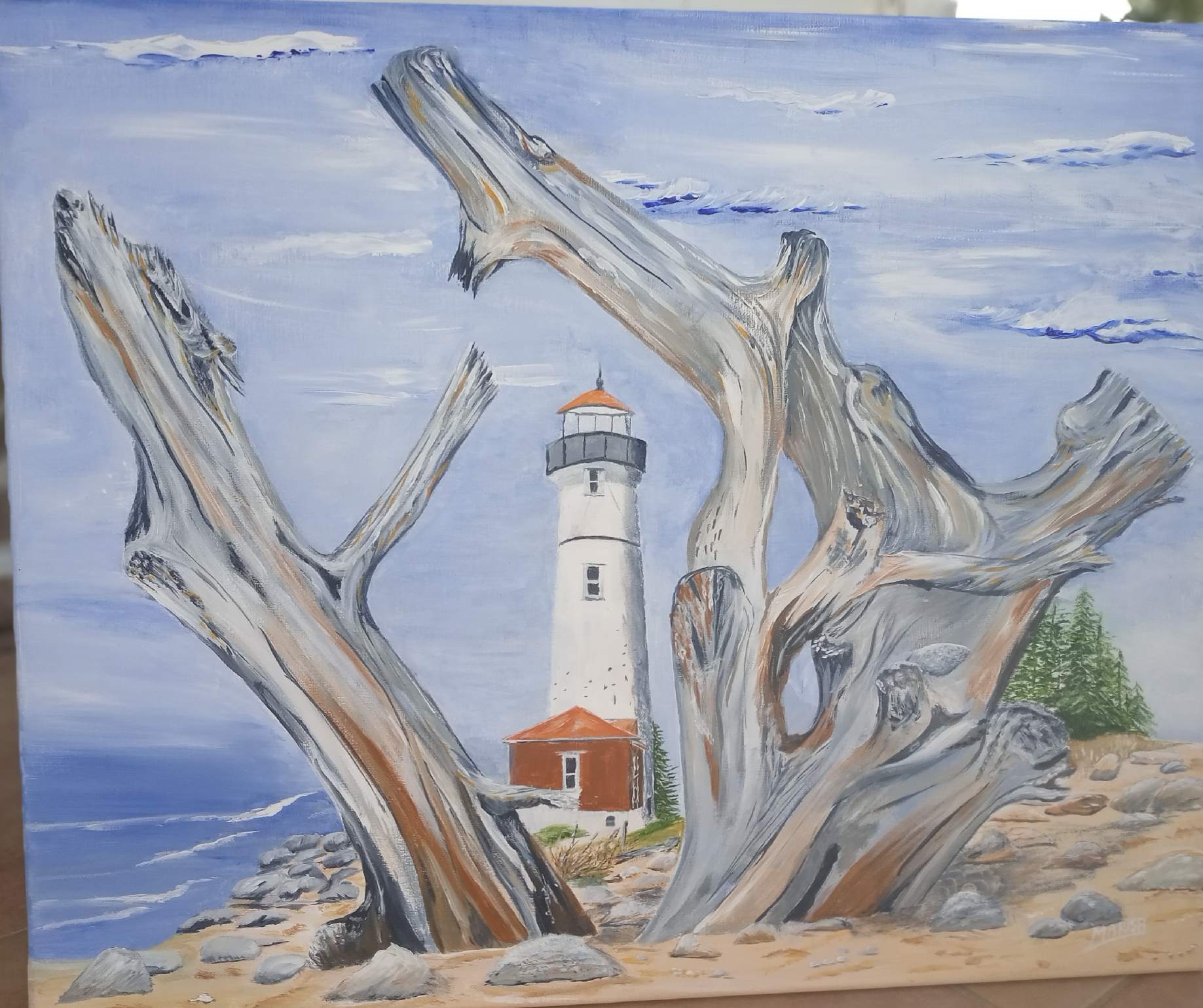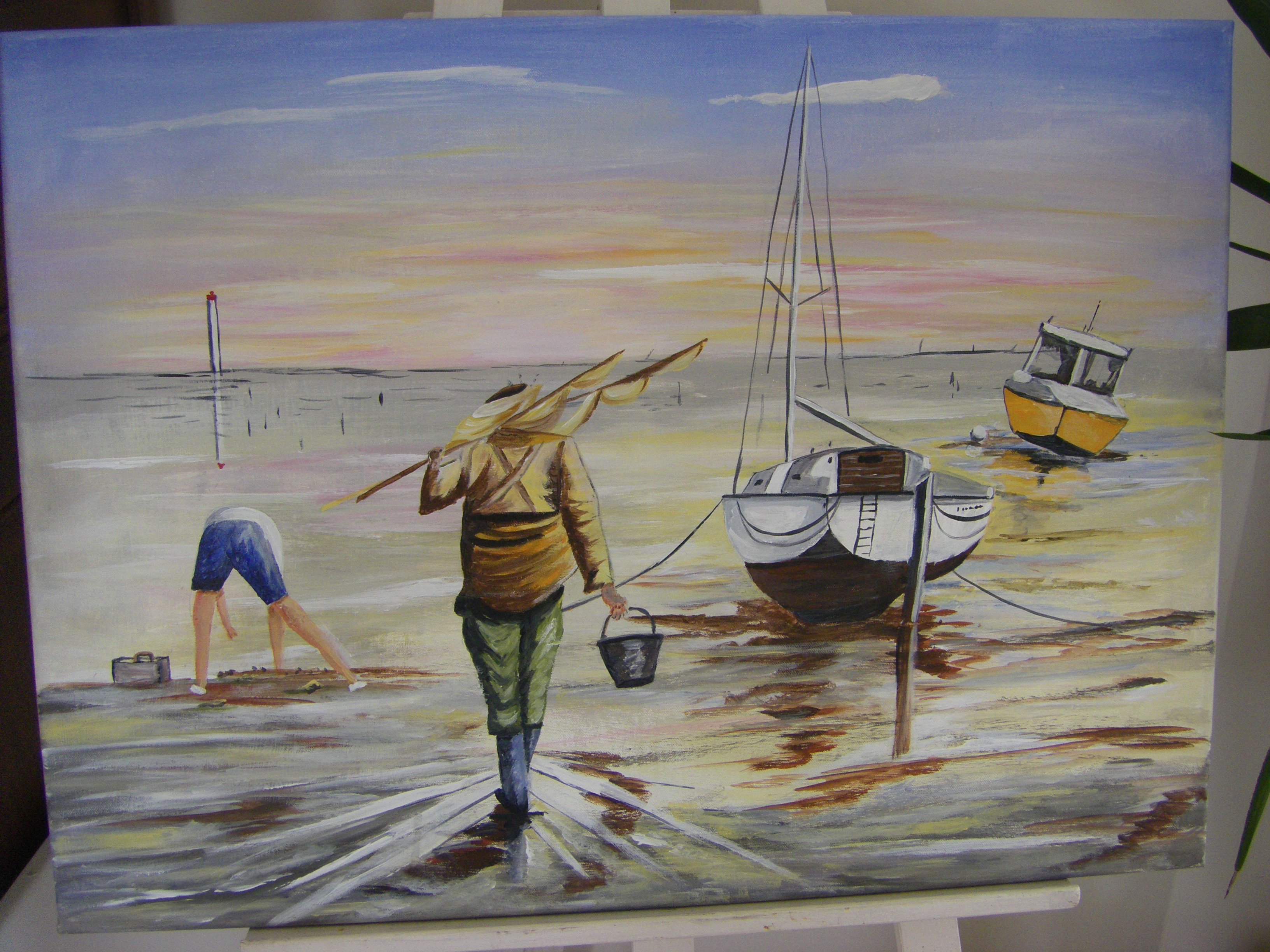 M-Paule Sacriste : Mes peintures sont de style figuratif, colorées et lumineuses ; mes sujets d'inspirations sont la mer, les oiseaux, la nature qui invitent à la relaxation et la rêverie.