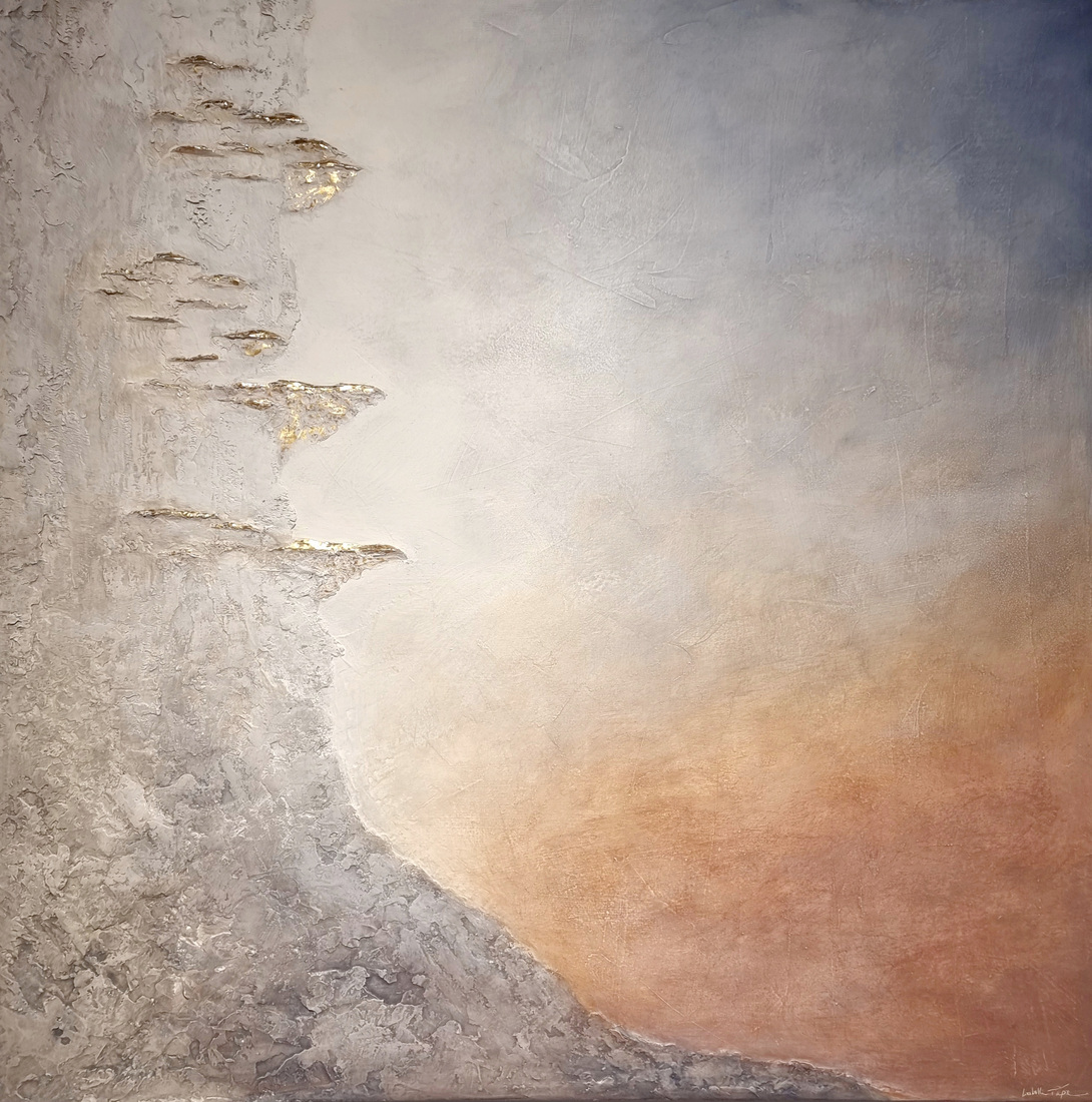 Les paysages imaginaires de ses peintures (sur panneaux de bois) prennent vie dans les textures, les reflets de l’or, la lumière et les couleurs. Autant de voyages oniriques à s'approprier, à savourer. Isabelle Tapie a été restauratrice du patrimoine bois doré pendant 15 ans. Depuis 20 ans, elle fait voyager sa dorure vers l’exploration d’un univers plus personnel et intime.