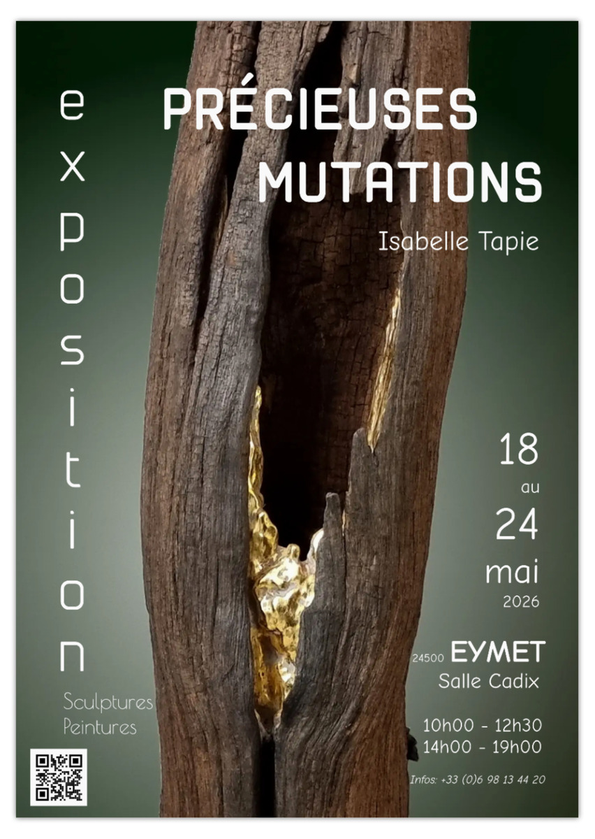 Artiste doreuse sur bois, grande amoureuse de la nature, Isabelle Tapie nous invite à un voyage singulier où "Brut" et "Précieux" se font écho, dialoguent, fusionnent…